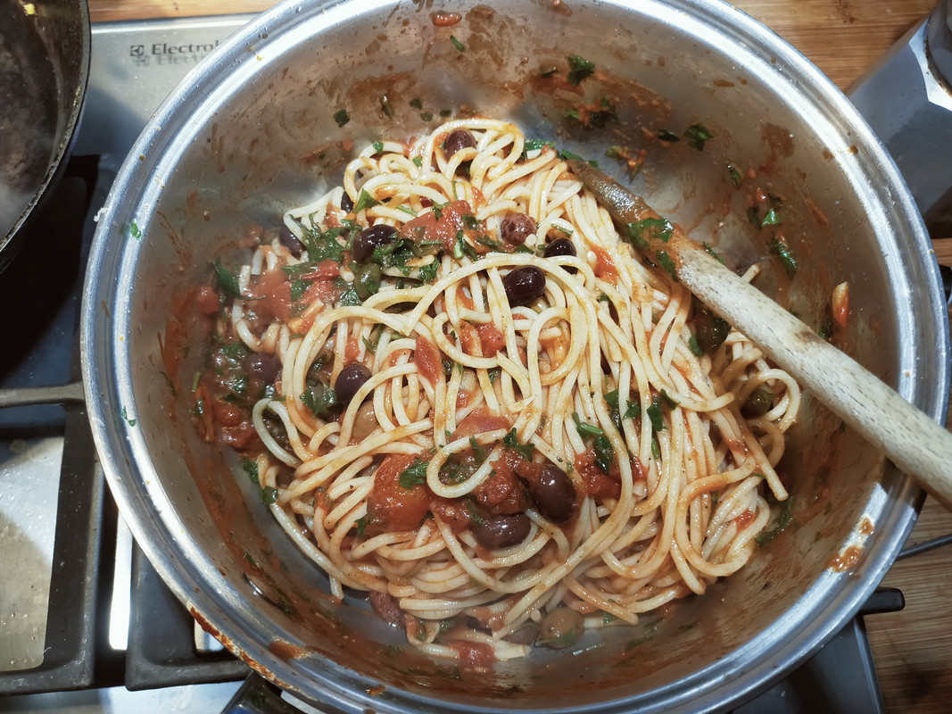 Bref j'ai fait la meilleure puttanesca de ma vie, même en Italie j'en ai pas mangé une aussi bonne. Et bien relevée
