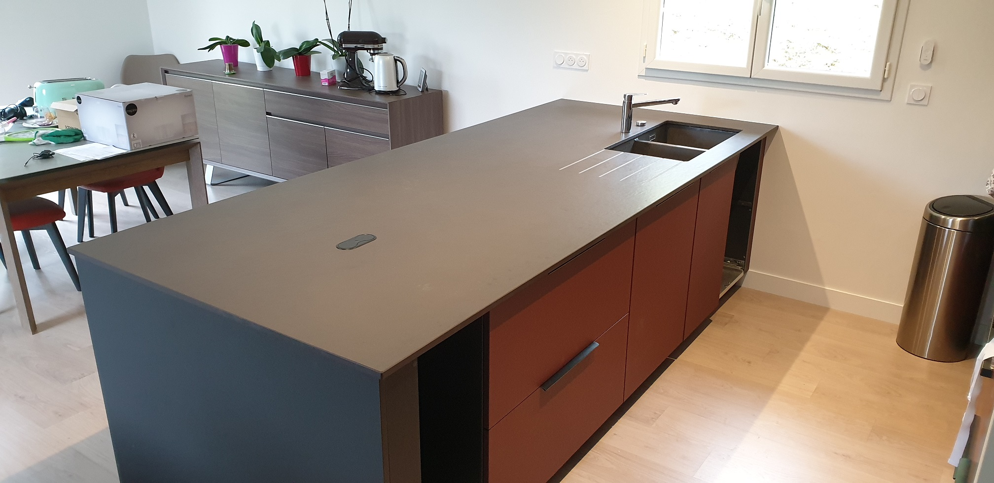 Pour 10k€, tu peux avoir bien mieux que tes meubles soviétiques. Là, tu pars dans un truc complètement à coté de la plaque avec une solution qui te coutera plus cher au final vu que tu devras rapidement tout refaire (sans compter que si tu vends ton bien, au lieu d'être une plus value ça peut être un frein à la vente) sans compter l'inconfort de genre de meubles pour une utilisation quotidienne. Oublie. Sans aller chez un cuisiniste, voit une solution avec des meubles Ikea par exemple, qui sont faciles à monter seul, suivre les tutos avant de se lancer quand même. Il y a du choix pour les portes. Pour l'élec, la plomberie et le plan de travail, tu feras faire. Ca sera le gros du budget du coup. En gros j'en ai eu pour ton budget (bon l'électricité c'était gratuit), pour 2.60 + 2.40 en meubles bas + colonne 0.60 (hauteur 240cm). et en meubles hauts 2.40, vasque Franke sous plan en granit noir de zimbabwe, hotte Roblin confidence 770, frigo Samsung grande taille, lave-vaisselle Bosch, lave-linge Siemens, carrelage métro ... et je suis encore dessous ton budget ... En grattant tu peux faire mieux. Par contre, ça serait pas idiot de redresser le mur avant la pose des meubles, c'est pas ça qui coute cher (BA13 collé au PF3, règles de maçon, niveau et ça roule). Message édité par Profil supprimé le 18-08-2021 à 16:11:01 |