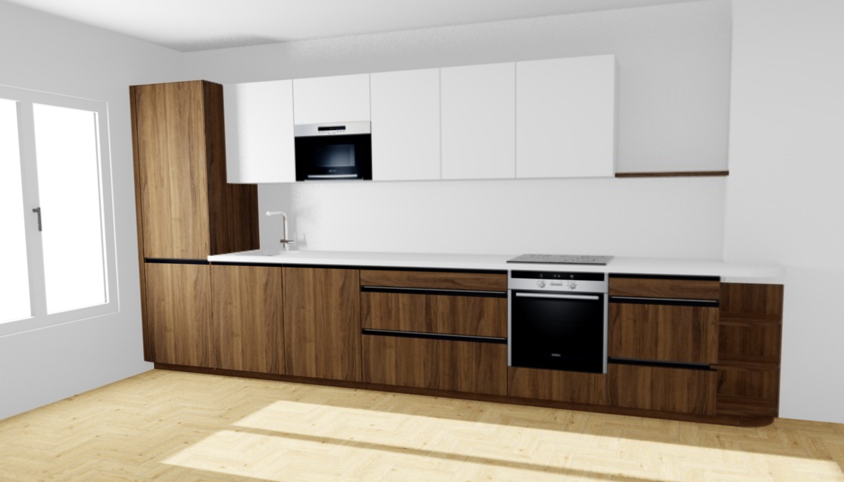 Docteur G Momo Motus | Petit retour d'xp sur divers cuisinistes... Donc cuisine "classique" en I, dans un appartement parisien, sur 4 m de large. Spécificité : j'aimerais avoir un plan de travail qui finit en arrondi. Ikea : j'ai fait leur simulation en ligne, certes ça n'a pas l'air cher comme ça mais avec un plan de travail en quartz, la livraison, la pose, etc, je m'en sortais à à peu près 5k€ tout compris. Sachant que je trouve leurs portes particulièrement moches, j'ai voulu passer par Plum, mais la facture prend alors +1200€. Vus les problèmes de stock et leur réputation un peu douteuse niveau pose, j'ai préféré passer par un vrai cuisiniste. Et ils ne permettent pas de faire des plans de travail avec arrondi So Cooc' : commercial super sympa, à l'écoute, disponible, prêt à aider. Mais ils souffrent du fait qu'ils font un peu du "IKEA mais pré-monté", c'est à dire que dès qu'il faut s'écarter du standard et faire de la demi-mesure, c'est compliqué, et ce sera vraiment beaucoup plus cher. Mais les meubles sont vraiment qualis, je les ai trouvés mieux que chez Ixina. Au final j'atterrissais sur un devis à 9k€, sans évier sous plan, et avec divers bricolages pour coller à mon besoin (la niche sous l'arrondi du pdt était deux petites niches superposées, etc). Ixina : pareil, commercial très sympa et pro, qui me met pas la pression, on sent qu'il aime bien bidouiller son logiciel. Après 2 rdv de 2h on a convergé sur une solution avec un plan de travail en céramique avec l'arrondi que je veux, évier sous plan, tiroirs partout en bas, et quelques prestations sur mesure sympa (la niche sous l'arrondi Voici le rendu : Au total je m'en sors pour 8400€ tout compris. Je pense que je vais partir là-dessus Maintenant il reste l'électro à trouver Message cité 3 fois Message édité par Docteur G le 18-01-2022 à 12:24:48 |