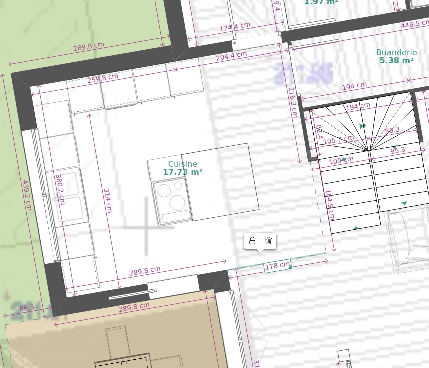 edit : comme sur ton plan vue de dessus en fait. Parce que t'as rapetissé ta cuisine dans l'outil Ikea (t'as du partir de leur "recommandation" j'imagine) et tu t'es arrêté à la cloison de la porte-fenêtre, alors que tu peux grignotter plus loin edit : Pour avoir encore plus d'espace autour de la table de cuisson, tu peux transformer l'ilot-table en ilot-bar (à la place du plan plus bas tout autour pour simuler une table) En fait, ton plan est pas mal, mais c'est l'outil Ikea qui t'as mal conseillé je pense. Tu verras ce que disent les cuisinistes Message cité 1 fois Message édité par GladiaS le 26-02-2022 à 05:38:33 --------------- --- Gladia --- |
