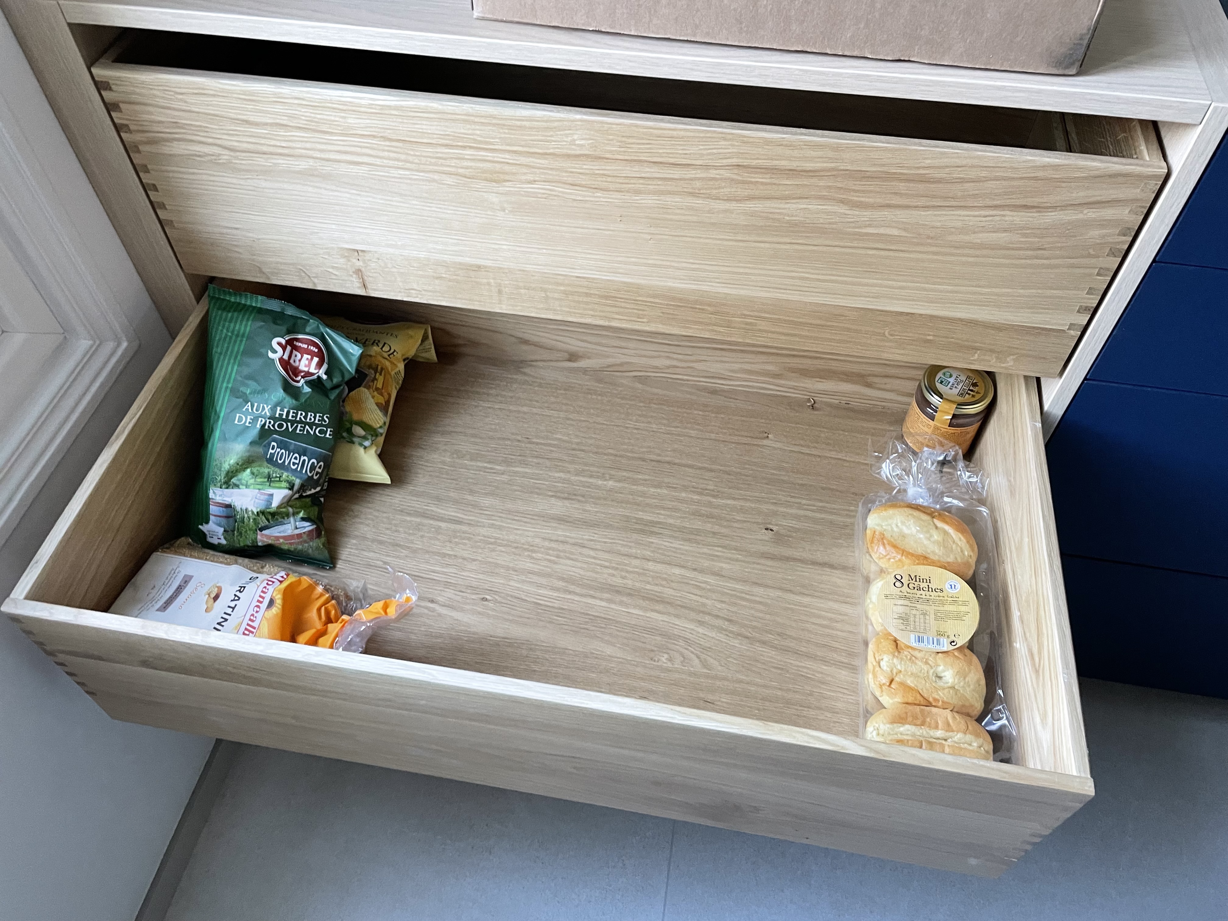 bouhi93 | 6 assiettes normales, ça rentre dans un tiroir de 26 cm. A la limite, si tu veux que de l'extérieur ça fasse plus épuré, tu prends un tiroir de 26 cm avec un tiroir à l'anglaise dedans... |