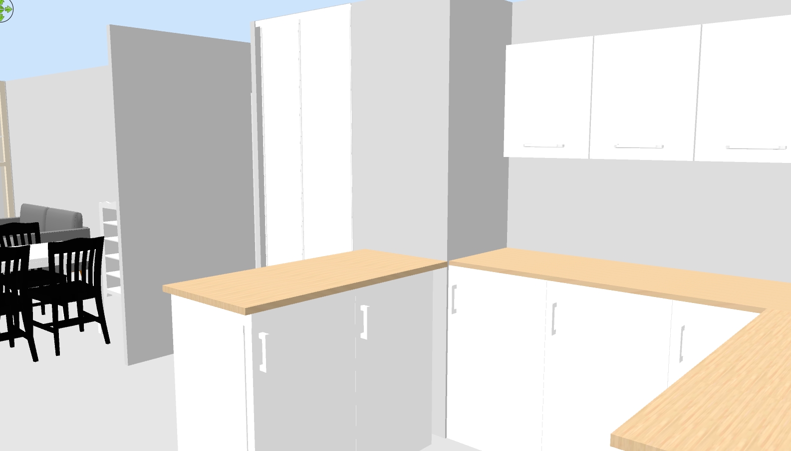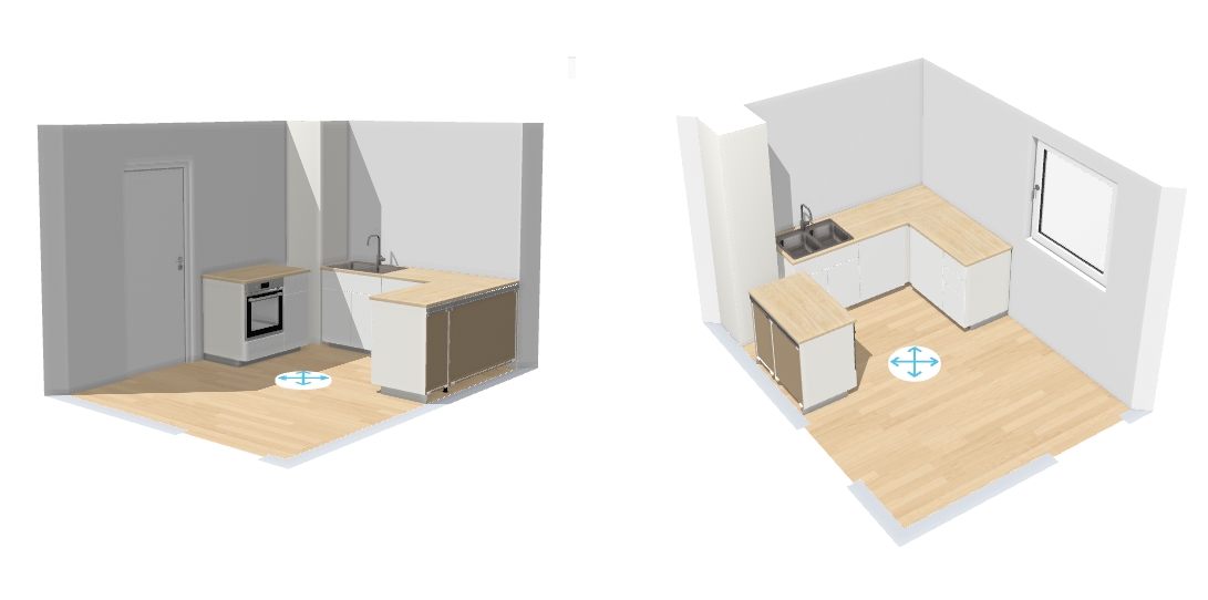 Mon souci est que je n'arrive pas à trouver de position satisfaisante pour l'électroménager : Il faudrait donc réussir à caser évier + LV + four + plaques. Ça ne semble pas fou, mais je galère vraiment, en particulier parce que je veux me fournir chez IKEA, et leurs solutions d'angle sont limitées... La première solution envisagée était celle ci, mais l'évier dans le coin semble vraiment nul : La dernière solution envisagée était celle ci, avec des meubles 37cm de profondeur sur la partie gauche : Je trouvais ça pas mal, puis j'ai réalisé que je n'avais pas positionné la plaque de cuisson et qu'il ne reste que la place au dessus du four, donc collé à l'évier, ça ne va pas du tout
