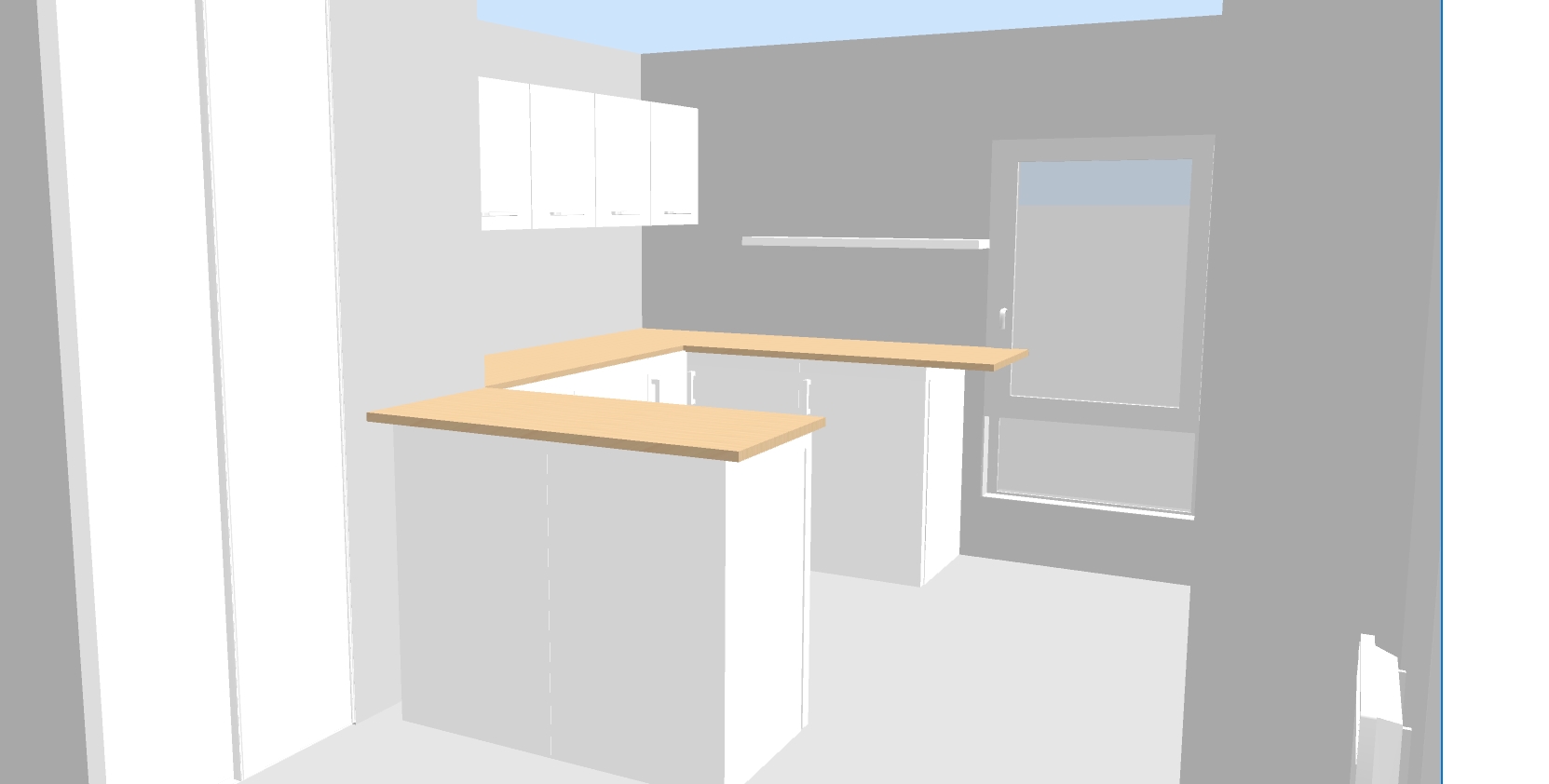En termes de forme générale de la future cuisine, ça donnerait quelque chose genre :