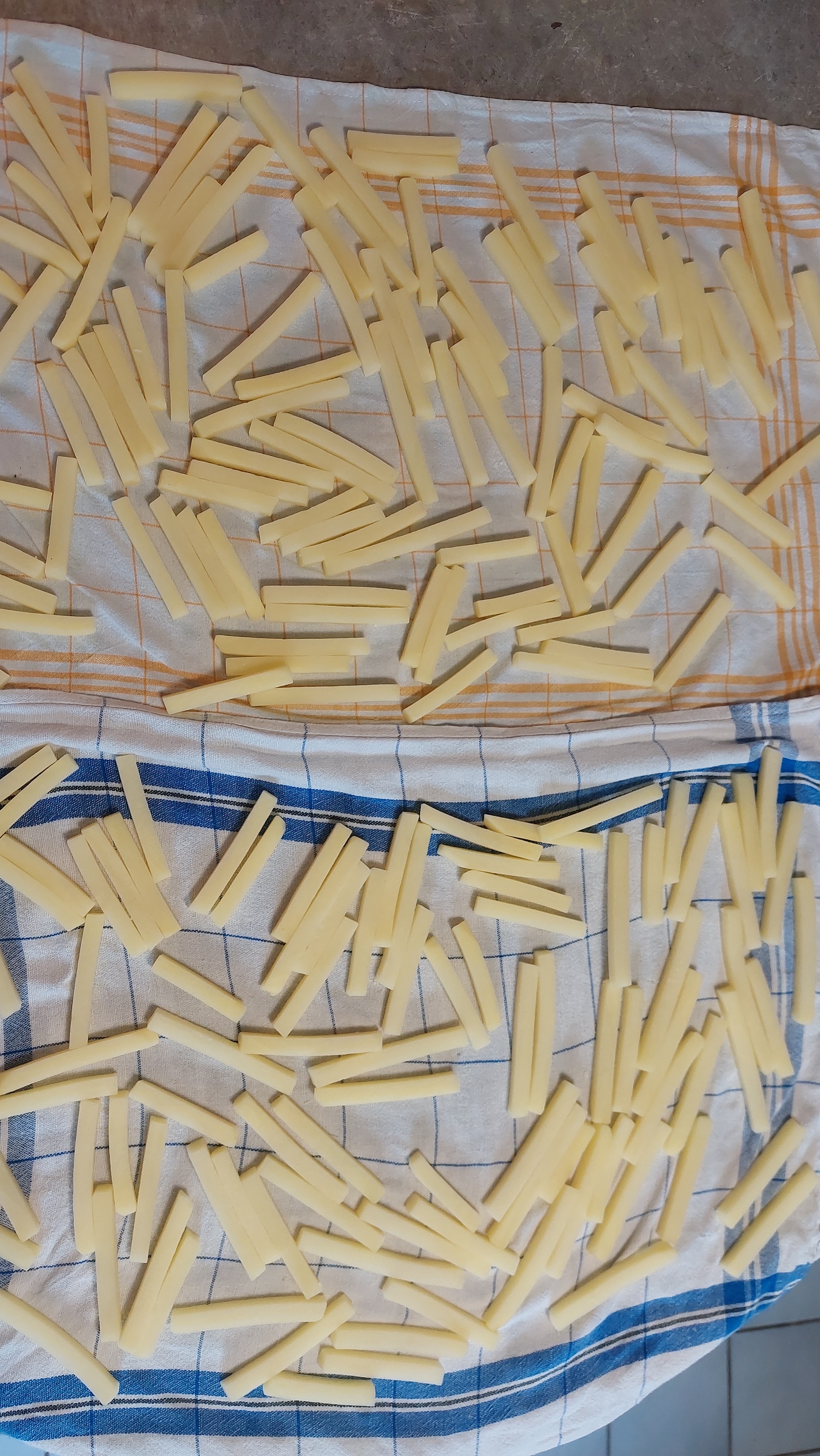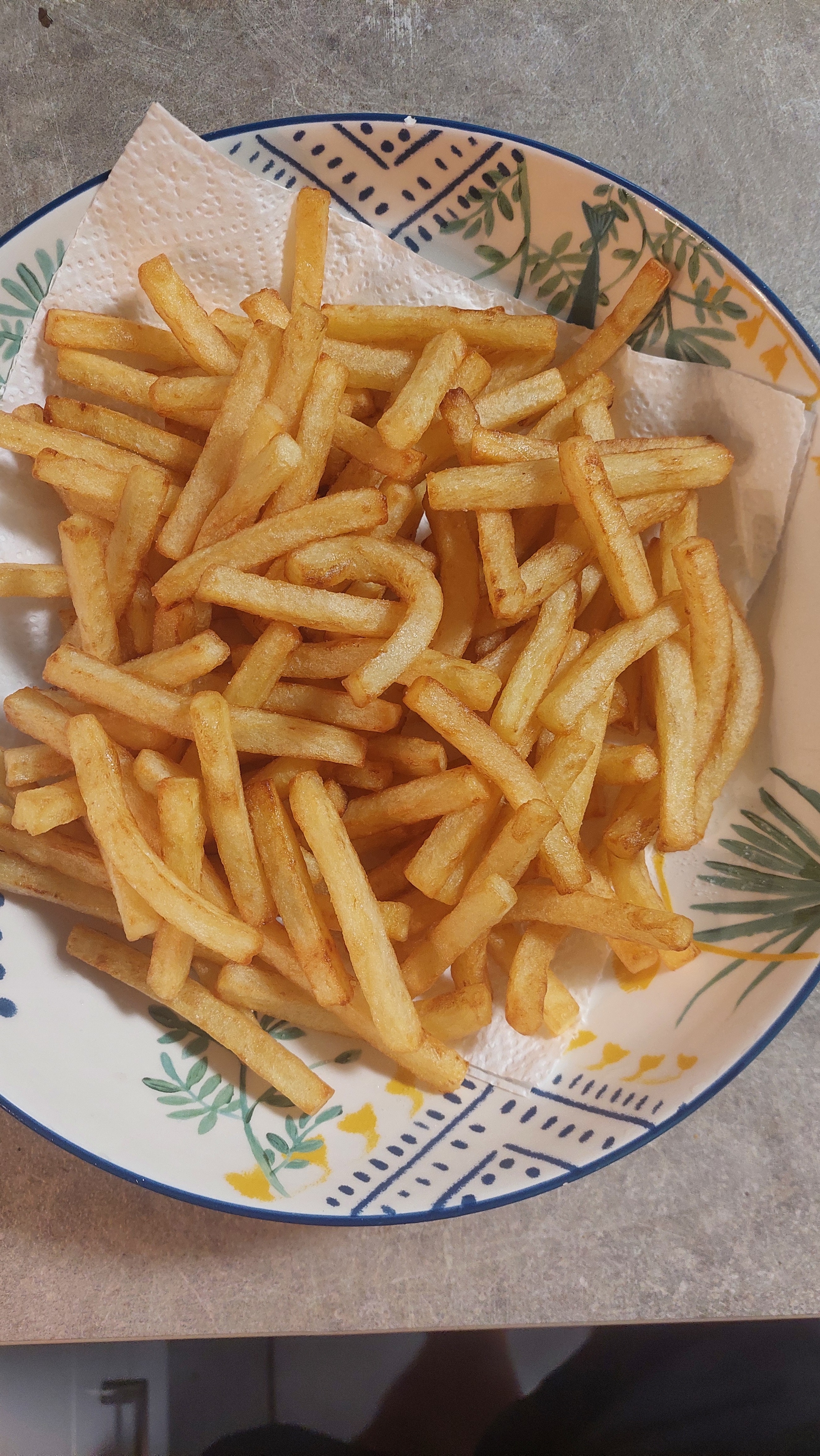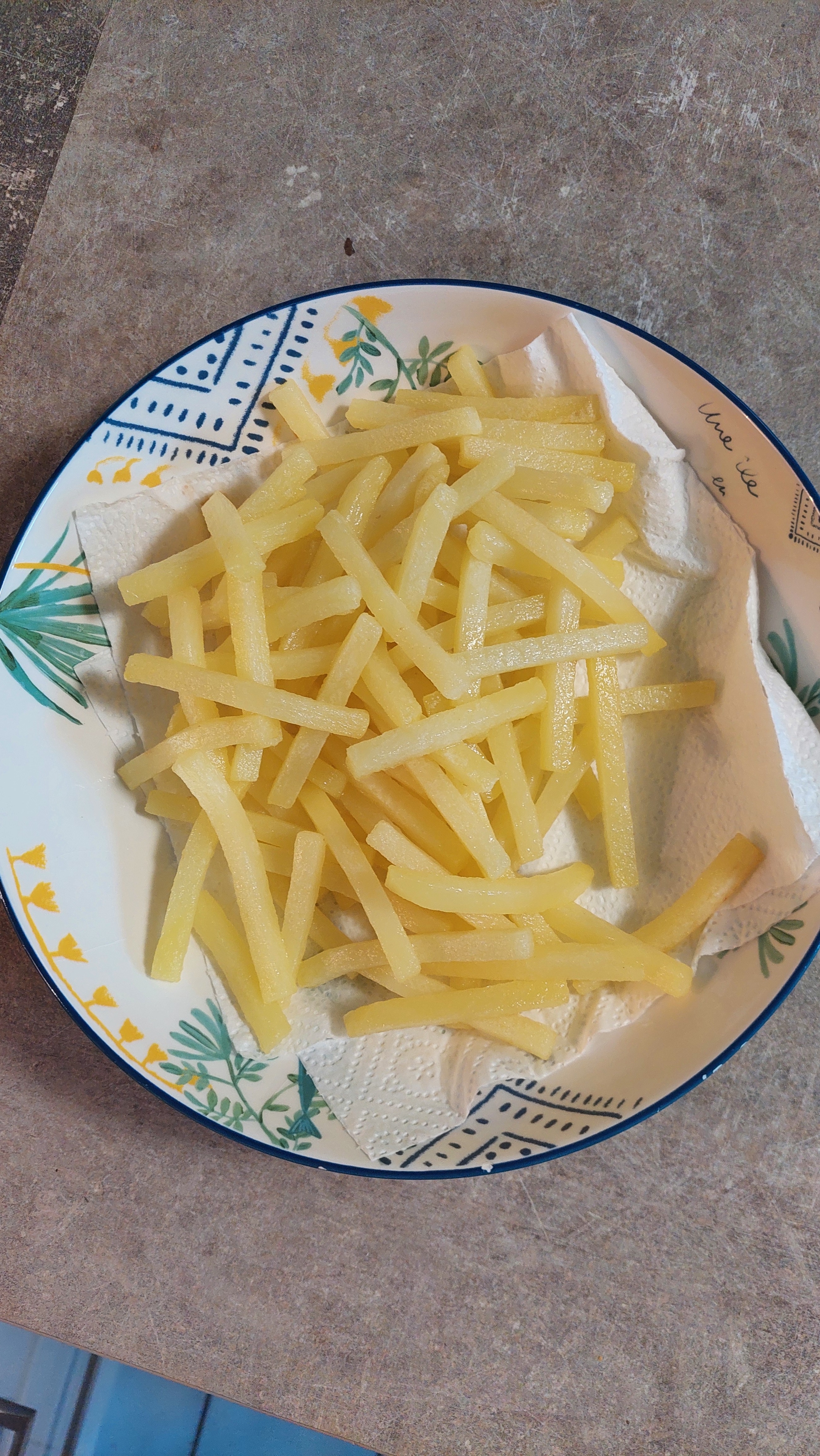 TZDZ | Les deux techniques existent, un bain d'huile ou deux. Moi je cuis complètement les frites dans l'eau donc un seul bain suffit après. |