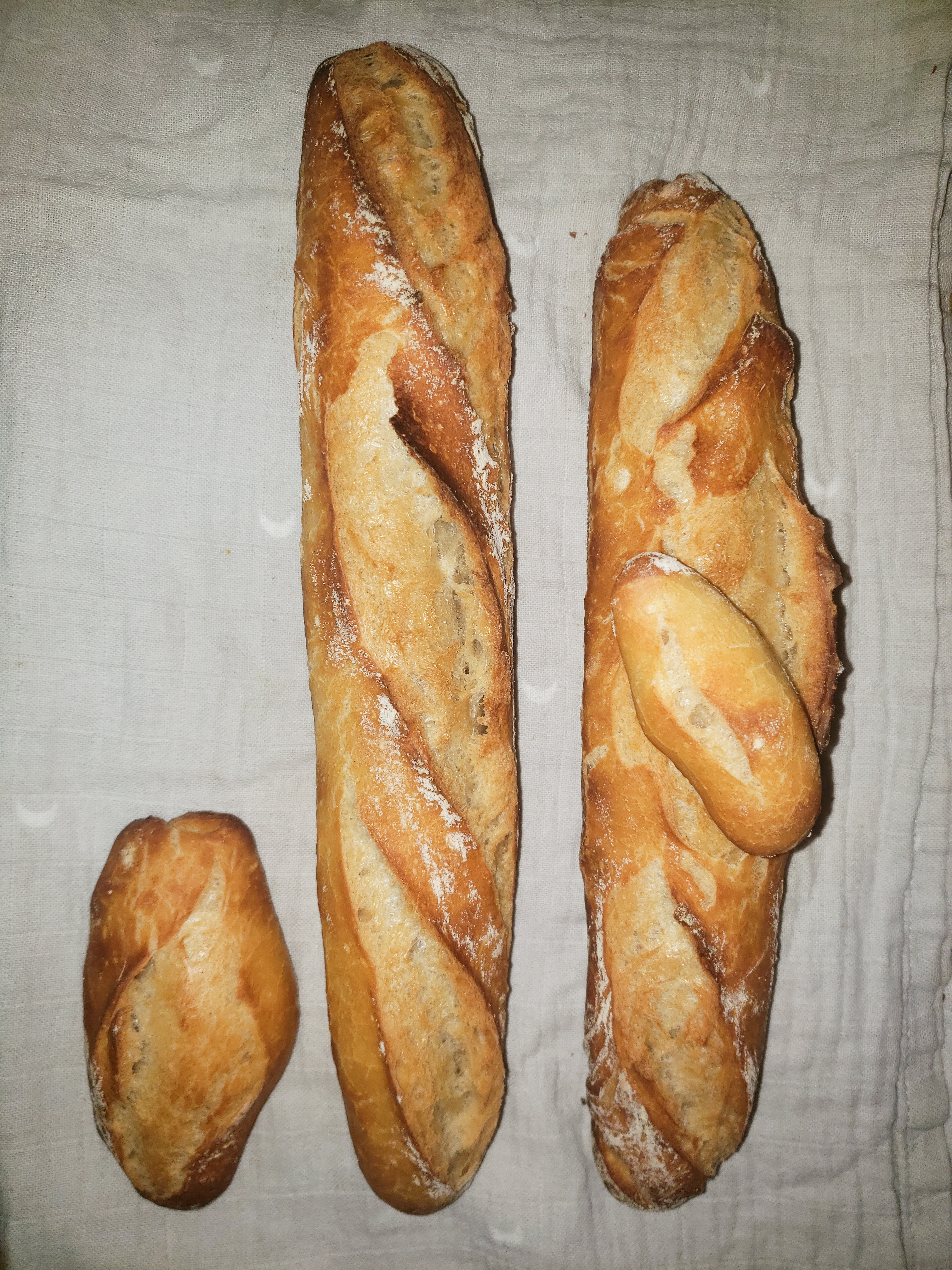 Charleston | Je fais toujours le pain 1 ou 2 fois par semaine ici, mais c'est pas très excitant, toujours un gros bâtard a la T65, T80, ou avec un peu de seigle ou de sarrasin selon les humeurs. Si j'ai la foi je fais des baguettes. Les dernières en date: (Les grandes font la largeur de ma grille de four, la petite a gauche une quinzaine de cm et la mini genre 5cm - c'est pour annoncer un heureux évènement Message édité par Charleston le 29-03-2023 à 12:16:21 --------------- Le rugby féminin recrute ! Faites tourner ! https://www.youtube.com/watch?v=6RQ_Xzy7lY8 |