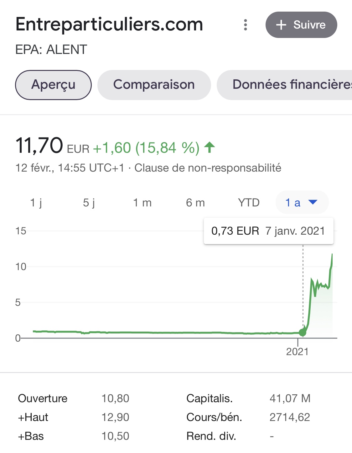 esomeprazol | Slt, dites, comment on explique ce qui se passe avec la société Entreparticuliers.com ? S’agit-il du même ressort que le phénomène américain GameStop ? Message cité 1 fois Message édité par esomeprazol le 12-02-2021 à 15:16:39 |