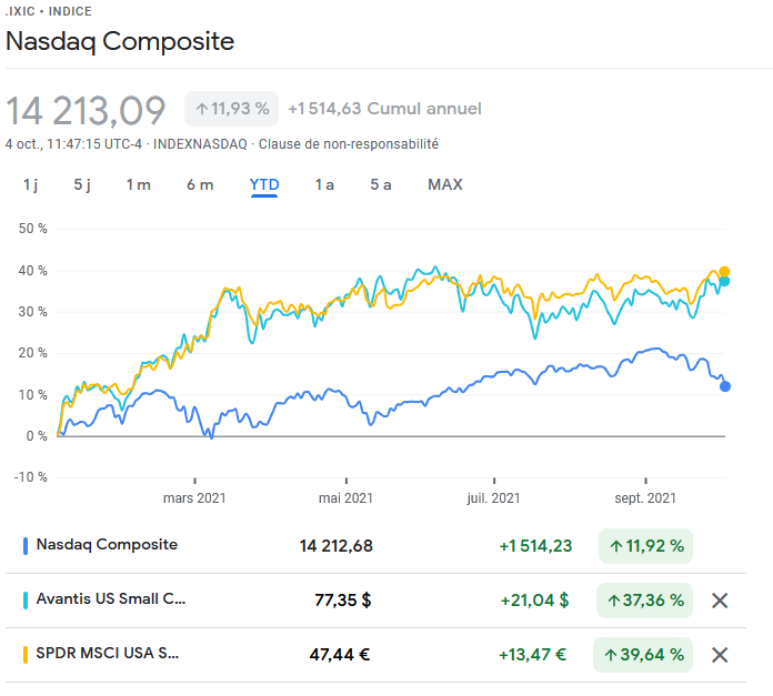 Là, le WORLD a perdu 3% en 1 mois et le NASDAQ 100 presque 5.