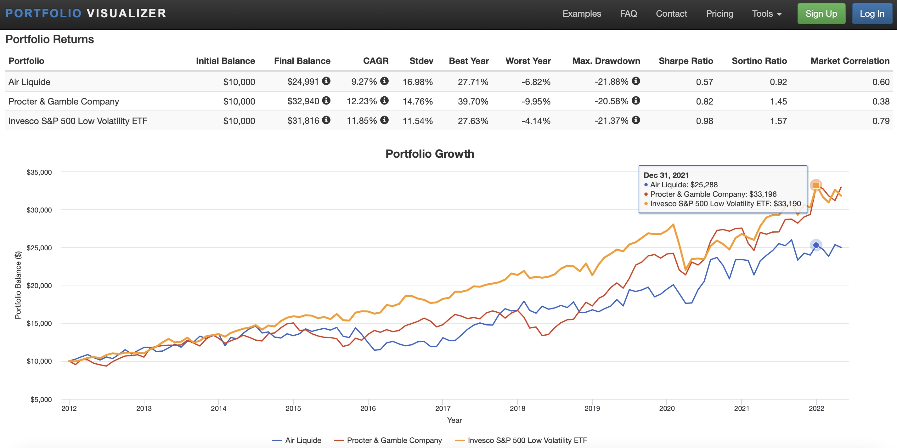 Tu te laisses embrouiller par ton impression visuelle, à mon avis. Que recherches-tu, un faible max drawdown, un faible écart type, ... ?