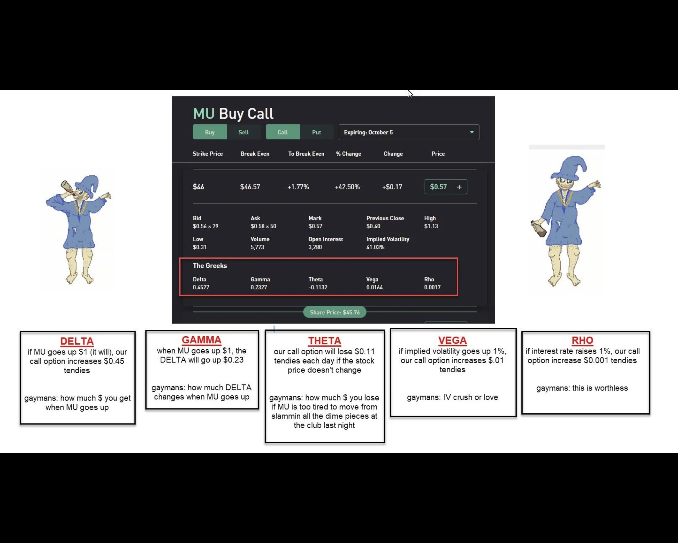 Pour ceux qui sont déjà un peu familier avec les options, explication rapide des "grecs":