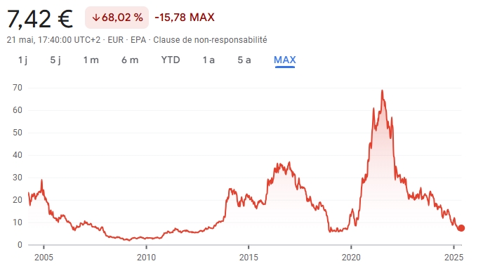 ceux qui ont acheté en 2010 sont encore largement en PV par contre pour Marc & Olivier qui ont chargés entre 20€ & 50€ enfin Marc & Laurent avaient bien dump leurs stocks à la tronche des PP en 2021 Message édité par cisko le 22-05-2025 à 10:13:03 |