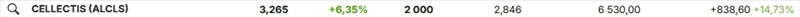 Rhadamenthos 6EQUJ5 | J'avais peur de monter un peu haut sur Cellectis, mais j'avais des sous après ma vente de Theraclion l'autre jour. Et là, ça s'éloigne de mon PRU, je suis un peu moins sur le qui-vive.
