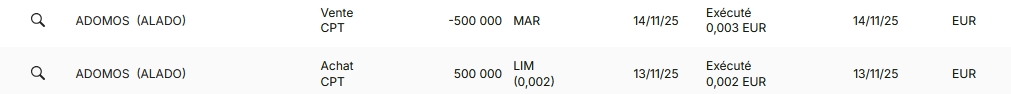 J'ai parié des sous que j'étais prêts à perdre sur la décision du tribunal, et j'ai récupéré mon petit pécule ce matin. Là c'est retombé à 028, on peut parier sur un rebond dans la journée, mais perso j'ai fini. Trop spéculatif. Message cité 1 fois Message édité par Rhadamenthos le 14-11-2025 à 09:27:03 --------------- "Toutes choses sont dites déjà ; mais comme personne n'écoute, il faut toujours recommencer" - André Gide, Le Traité du Narcisse |