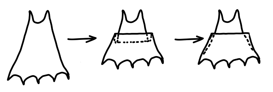 Ekipatang | La cape a une découpe en bas comme celle-ci à peu près :