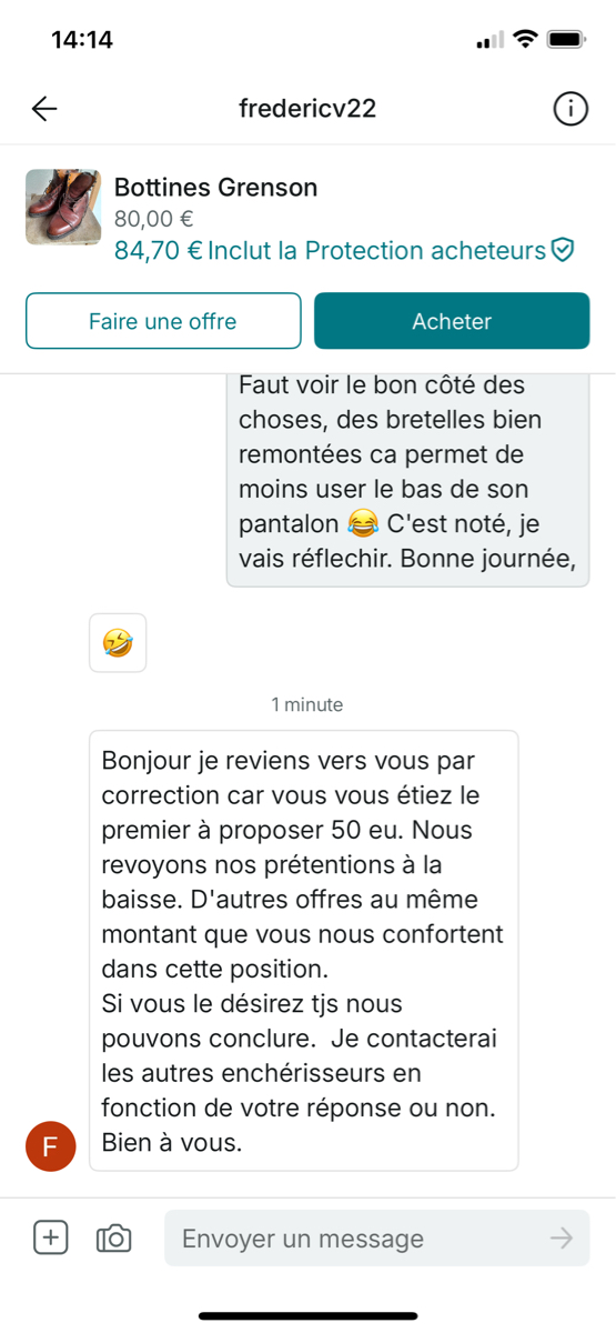Une cotisation ponctuelle pour achat d'une paire de pompes et démontage avec CR photo et vidéo par un cordonnier, vous êtes :1. Pour, à hauteur de 5€