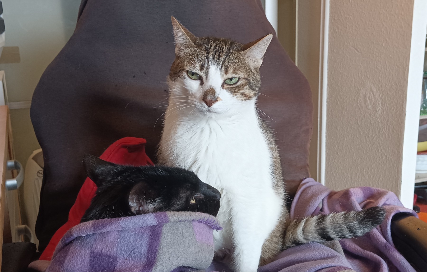 J'ai passé une nuit de merde avec les bébés miaouss, ils ont foutu le bordel toute la nuit, obligée de les foutre tous dans mon lit pour finir la nuit "