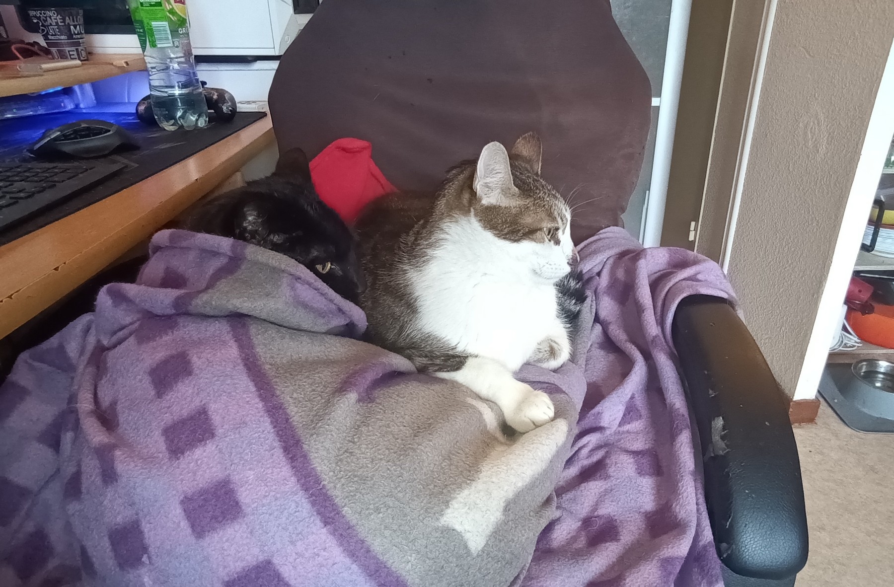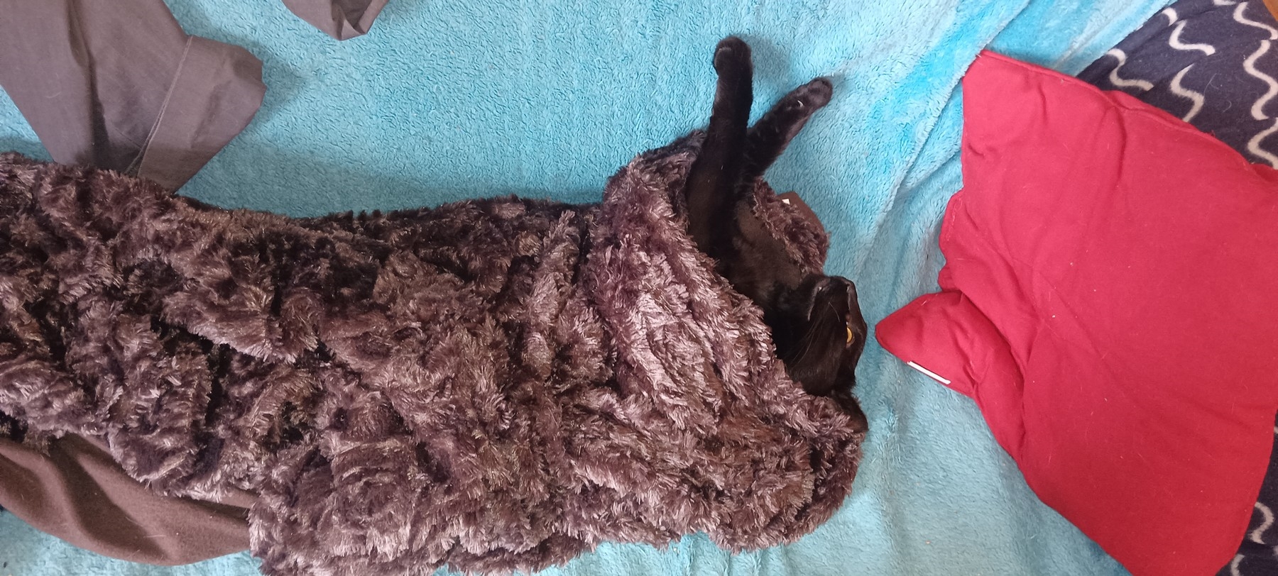 Une sieste merveilleuse avec lui :D J'étais calé sous le plaid la tête vers le dossier du canapé, Pepsi s'est incrusté dessous, sur le dos les 4 pattes en l'air, sa bouche contre la mienne :D :love: