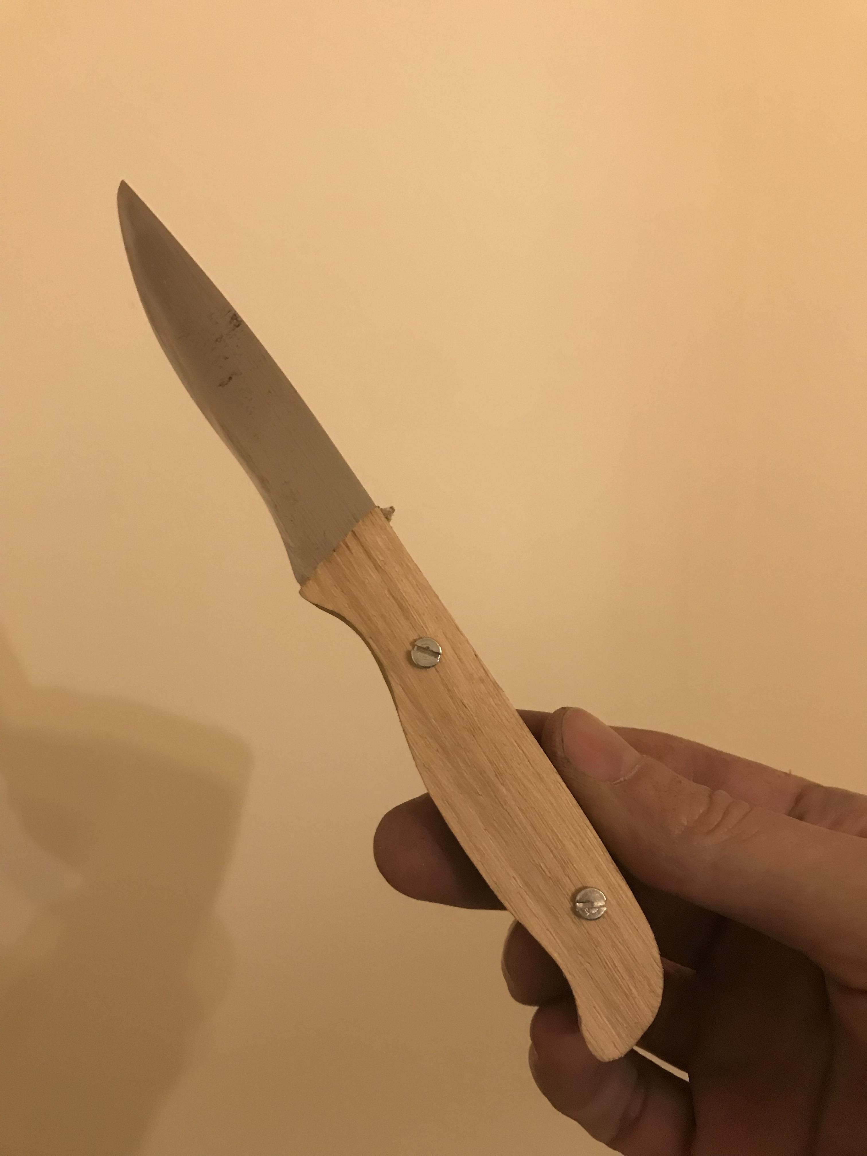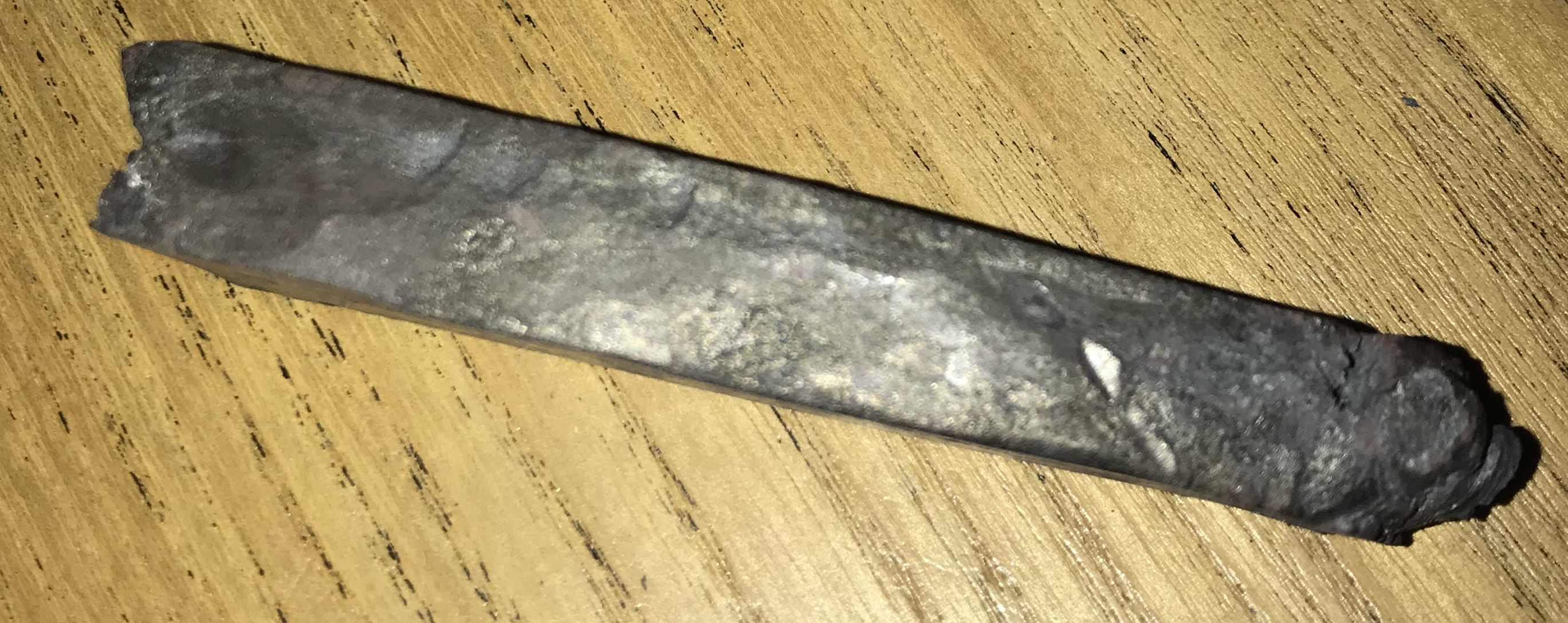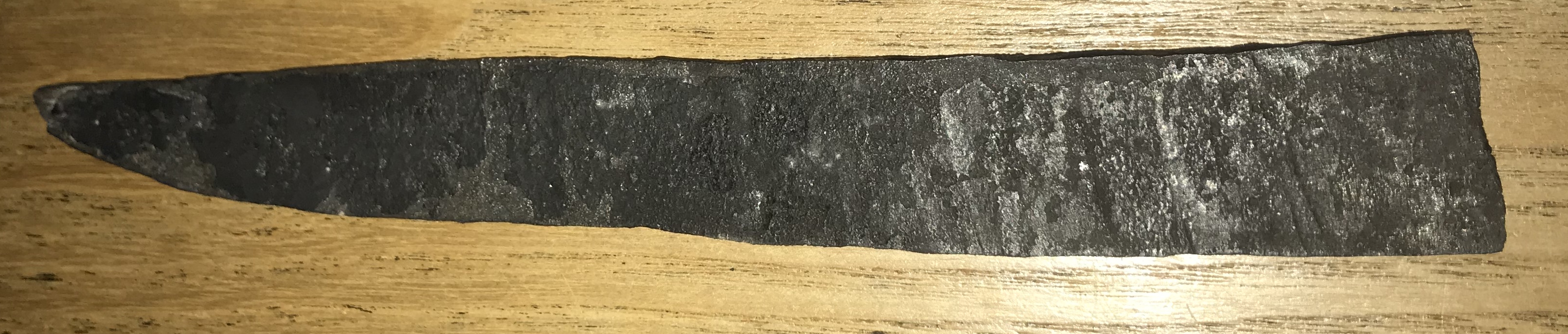 Le sandwich a l'air bien soudé, j'avais hésité à le couper en deux pour voir si le coeur est bien soudé également, mais tant qu'à faire je vais probablement former une lame et je verrais bien le résultat. Qu'entends tu par "traiter" ? Bref, je vais probablement choisir l'option d'une lame courte en soie partielle, ça me donnera l'occasion d'essayer un autre type de manche, j'aimerais bien faire une soie partielle cachée avec deux rivets. Sinon, pour la prochaine lame ça te semble aussi trop peu ? La lame en question : Message édité par artouillassse le 13-01-2026 à 08:37:08 --------------- Rien pour le moment |