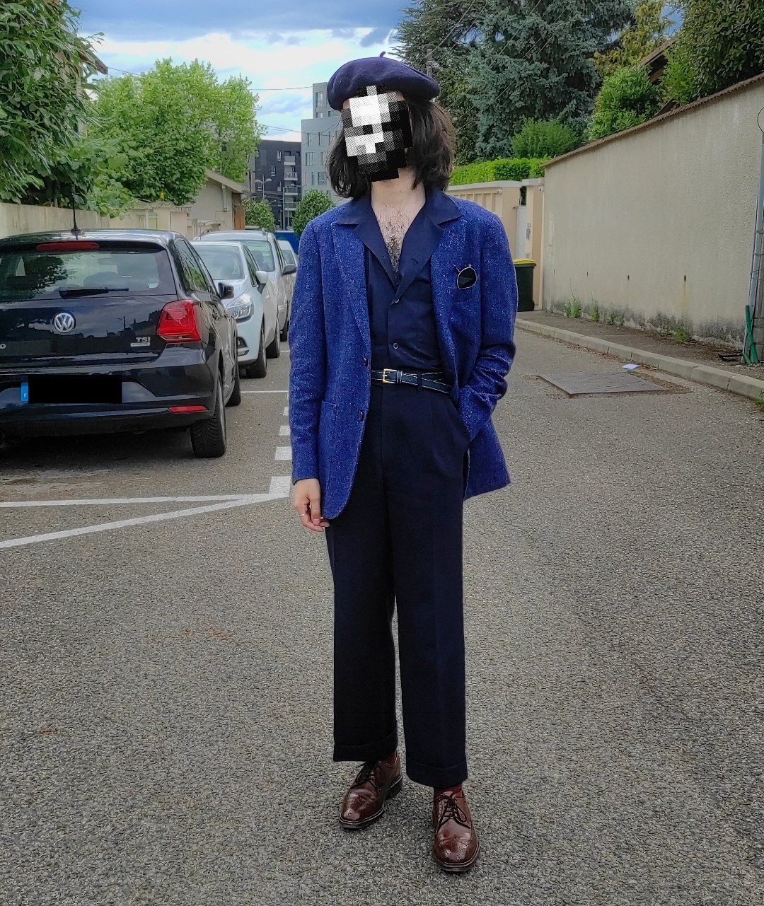 Il faudrait repasser le chino, et lui faire un revers/le retoucher, mais l'ensemble est cool [:viniw:2]