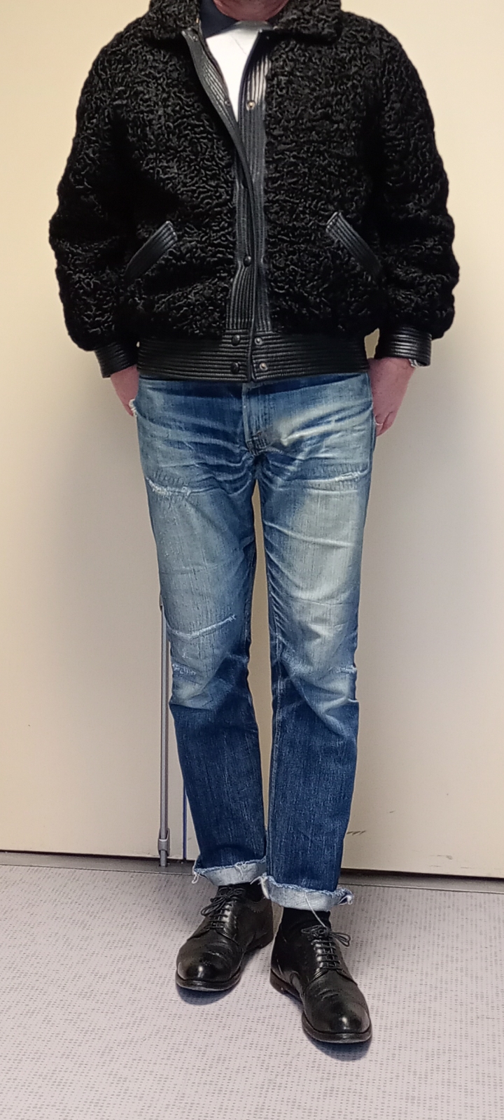 eamesimport "That's Understatement" | tenue du jour, moumoute. blouson en astrakan, offert à ma femme il y a deux ans, NOS années 80, bords en nappa surpiqué, hyper fin
