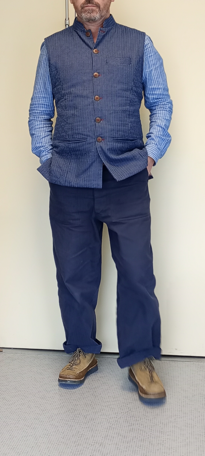 gilet indien en coton surpiqué, doublure en blockprint imprimé main.