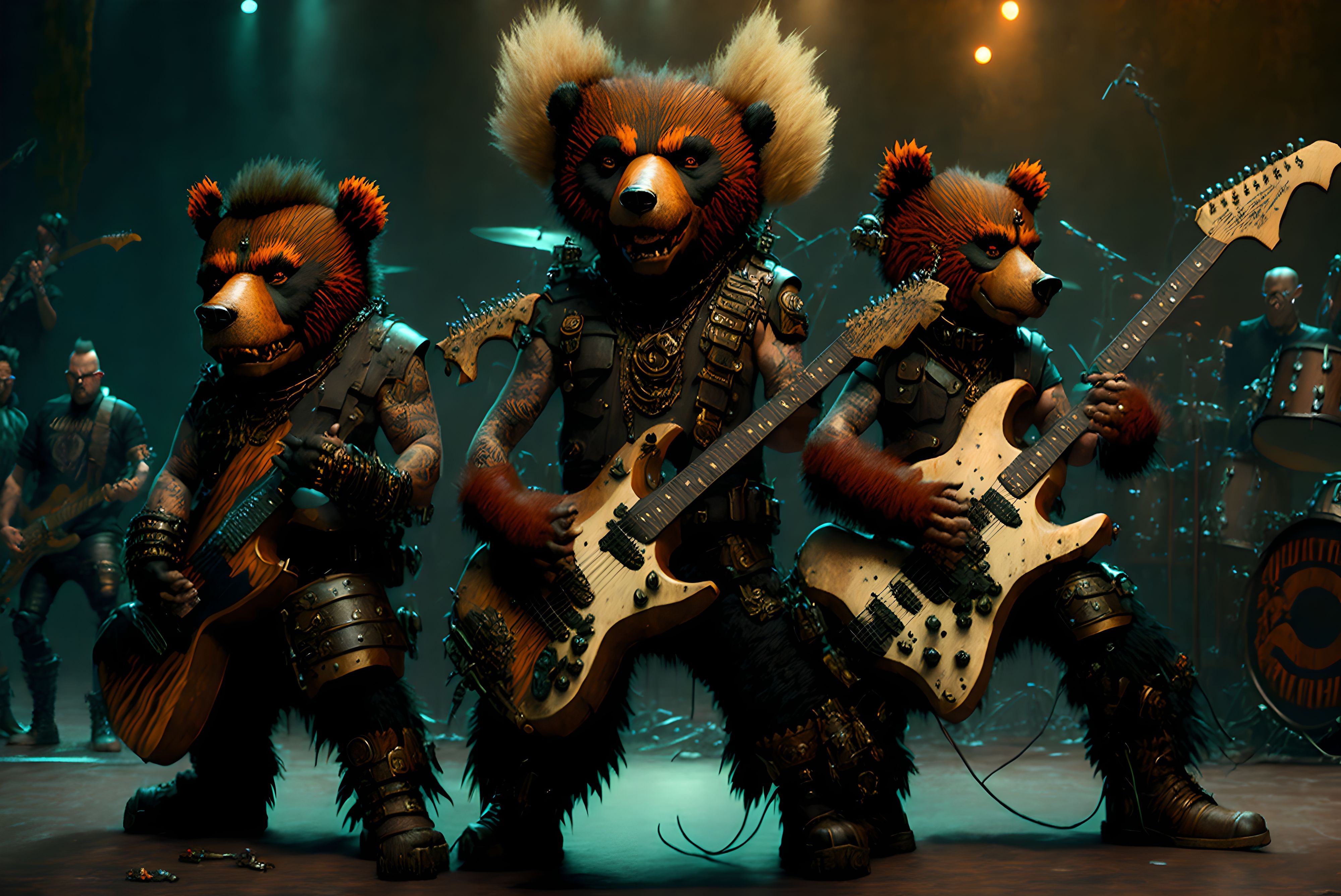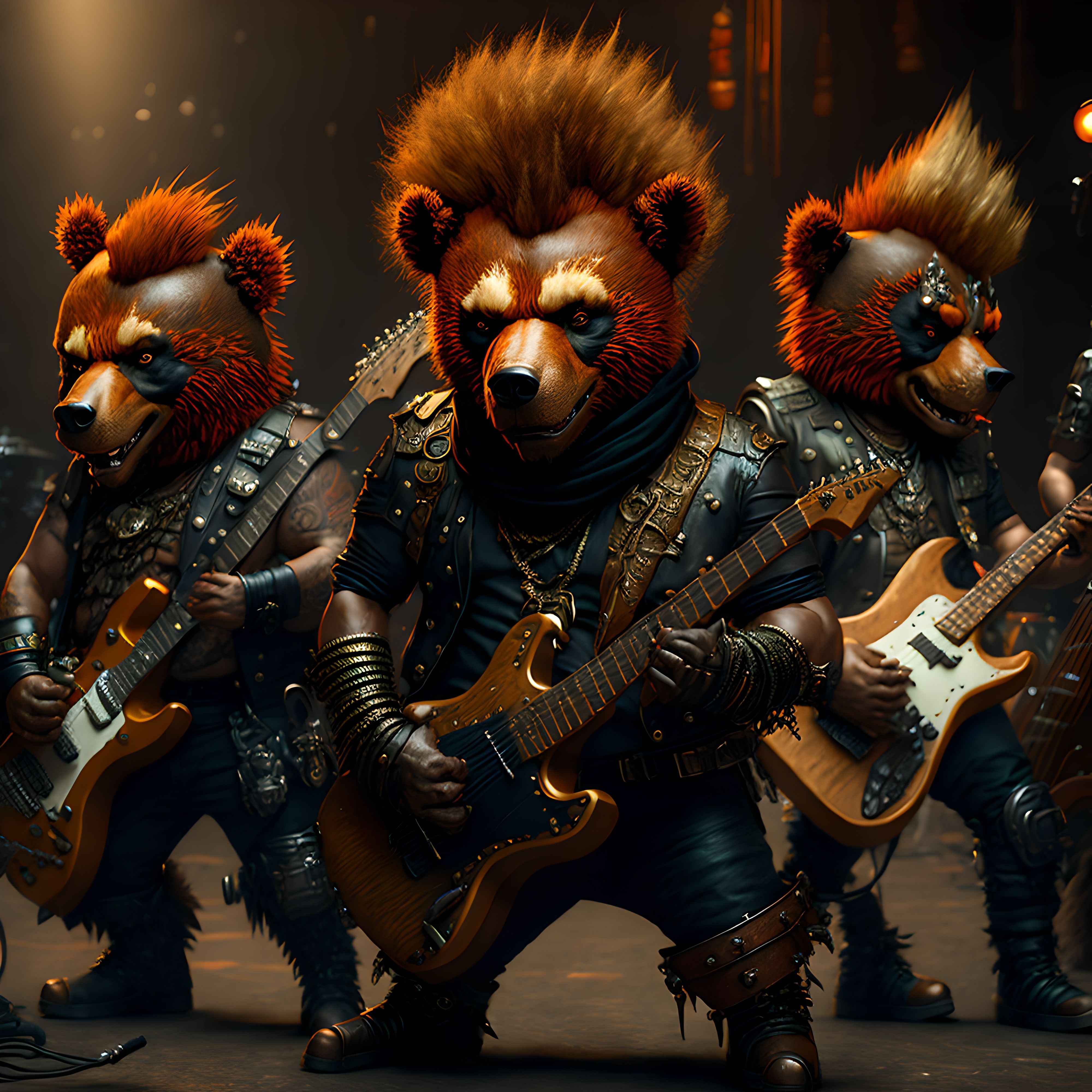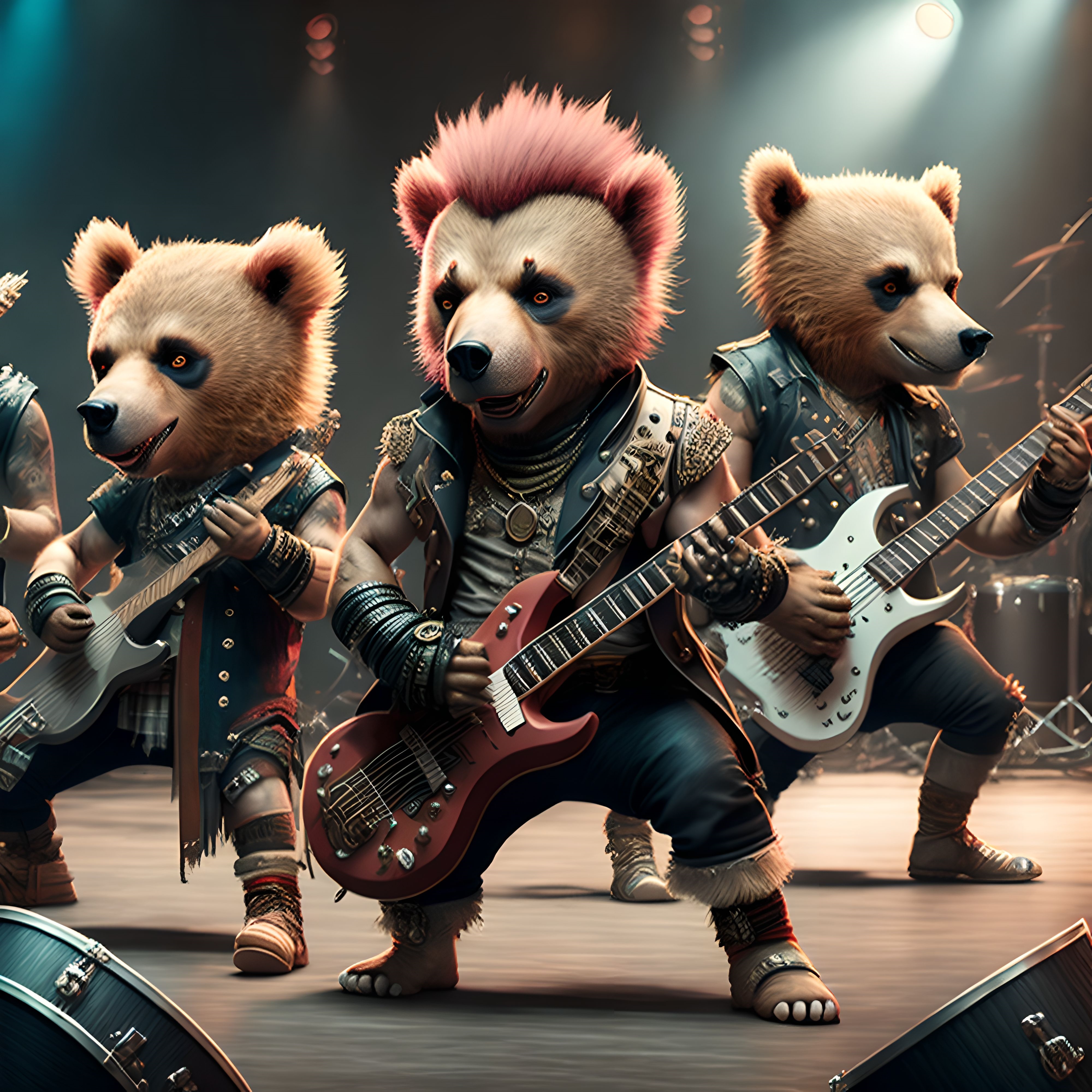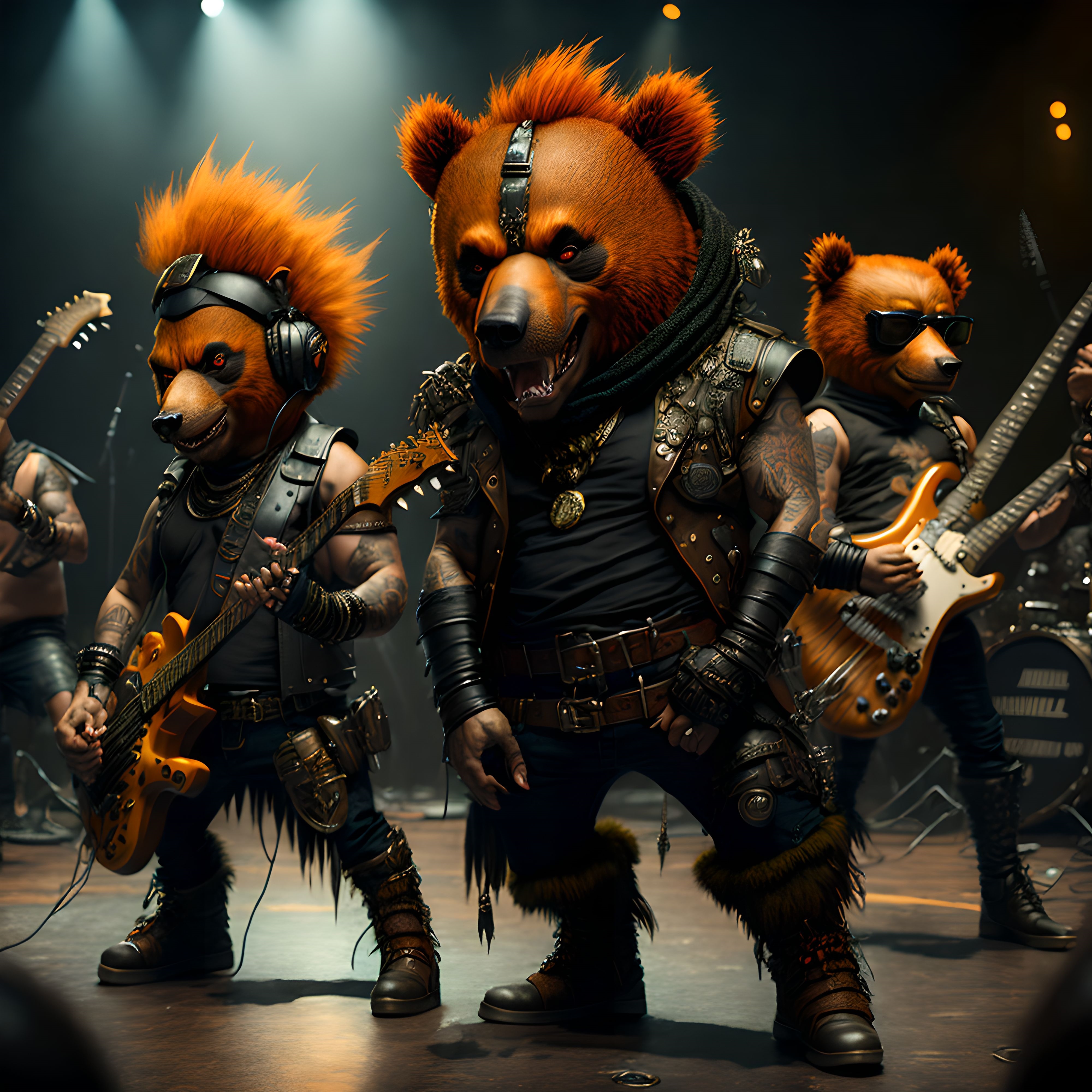 le quincailler | Arf, rien de fou, juste des images d’un groupe de punk rock qui joue, sous n’importe quel angle, avec la liberté de lieu que permet l’ia... Ah, et les musiciens, c’est des ours... --------------- |