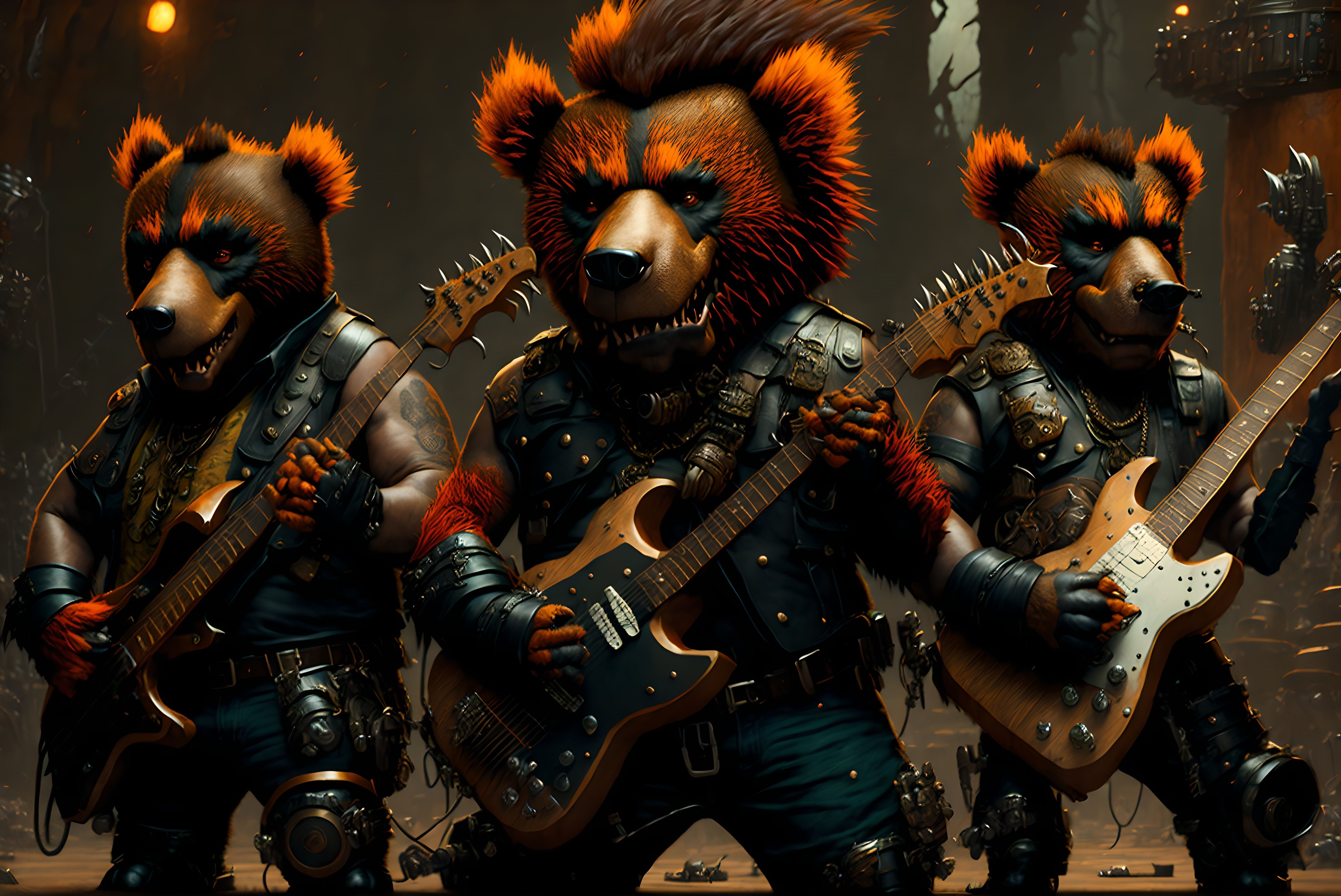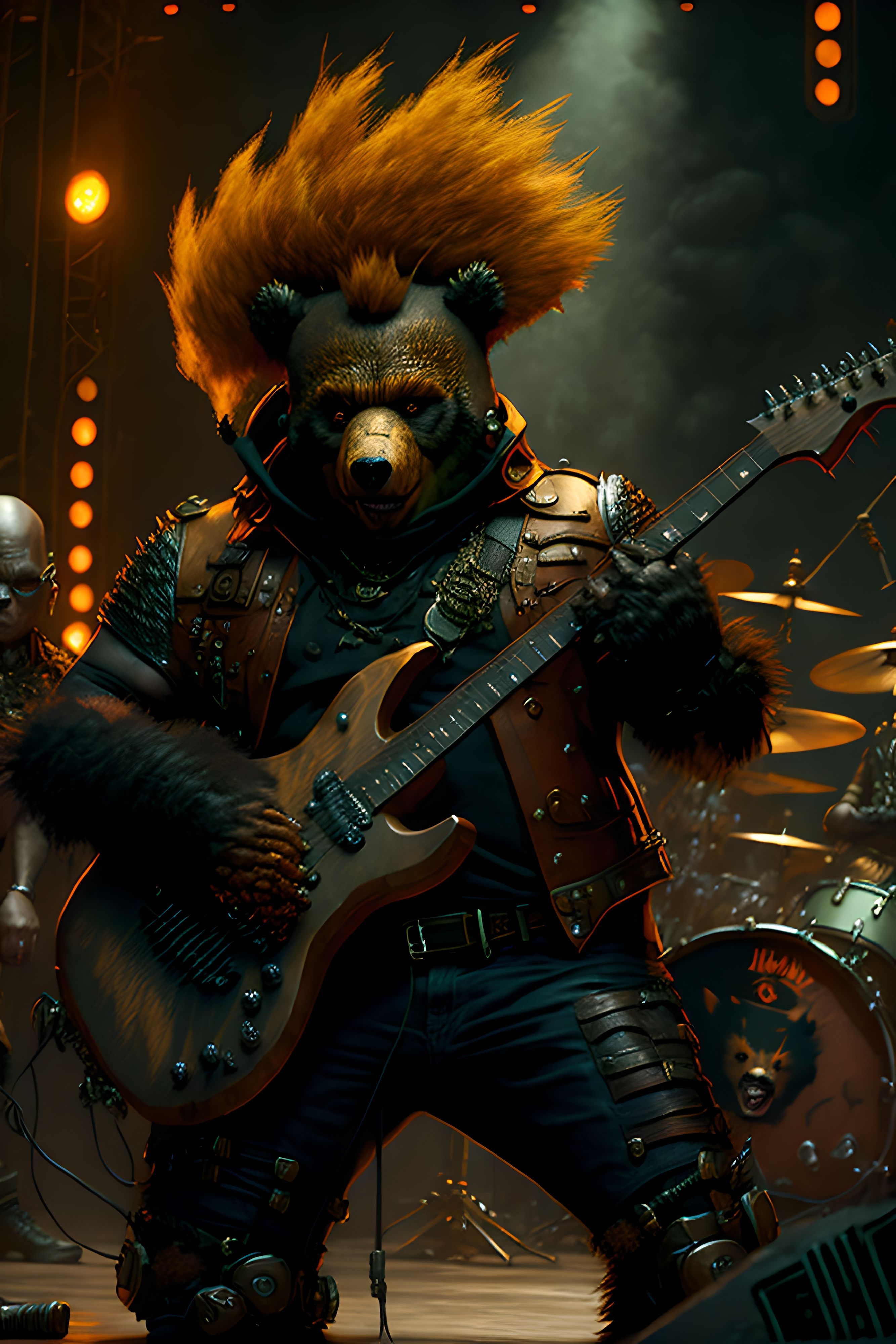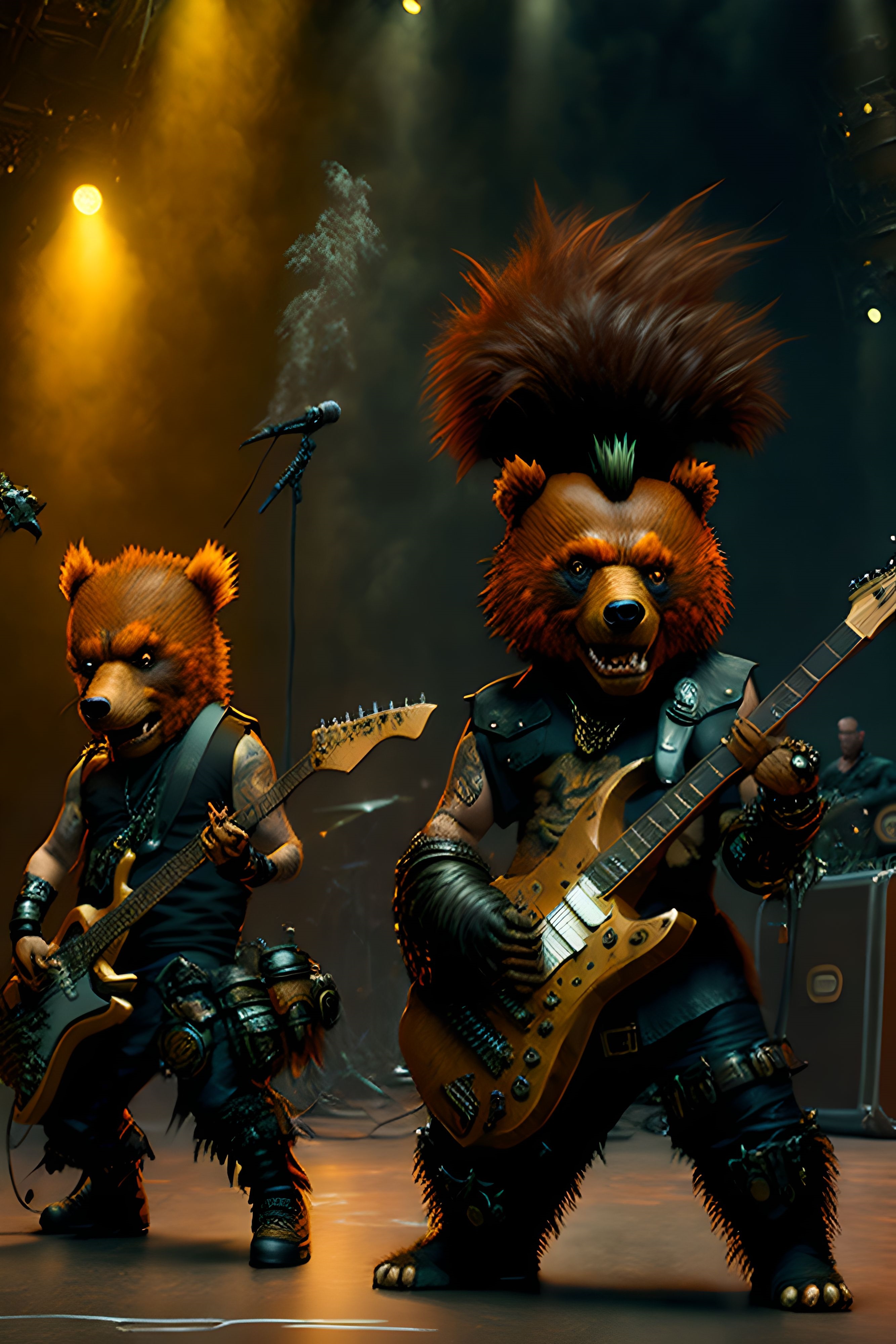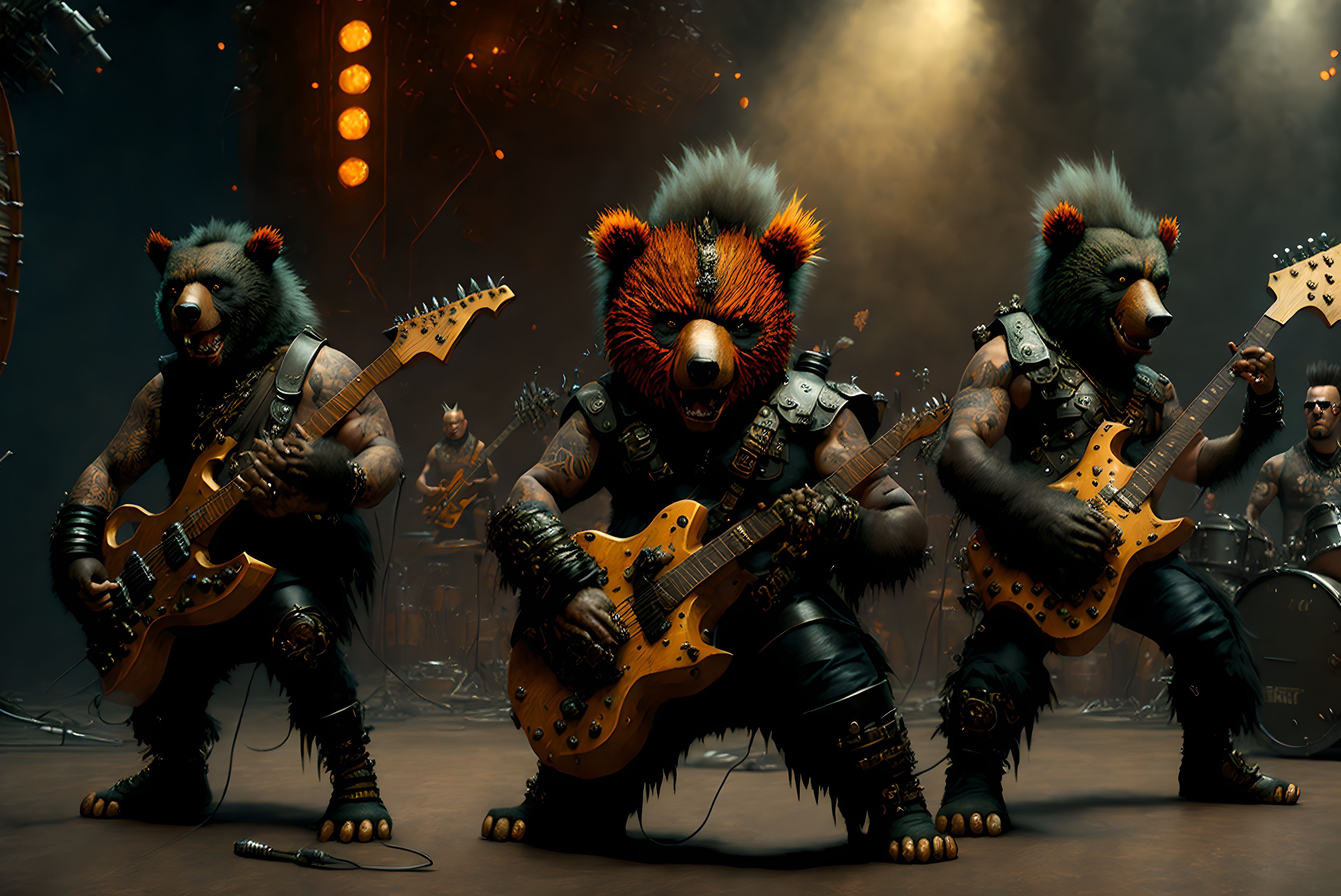 le quincailler | Arf, rien de fou, juste des images d’un groupe de punk rock qui joue, sous n’importe quel angle, avec la liberté de lieu que permet l’ia... Ah, et les musiciens, c’est des ours... --------------- |