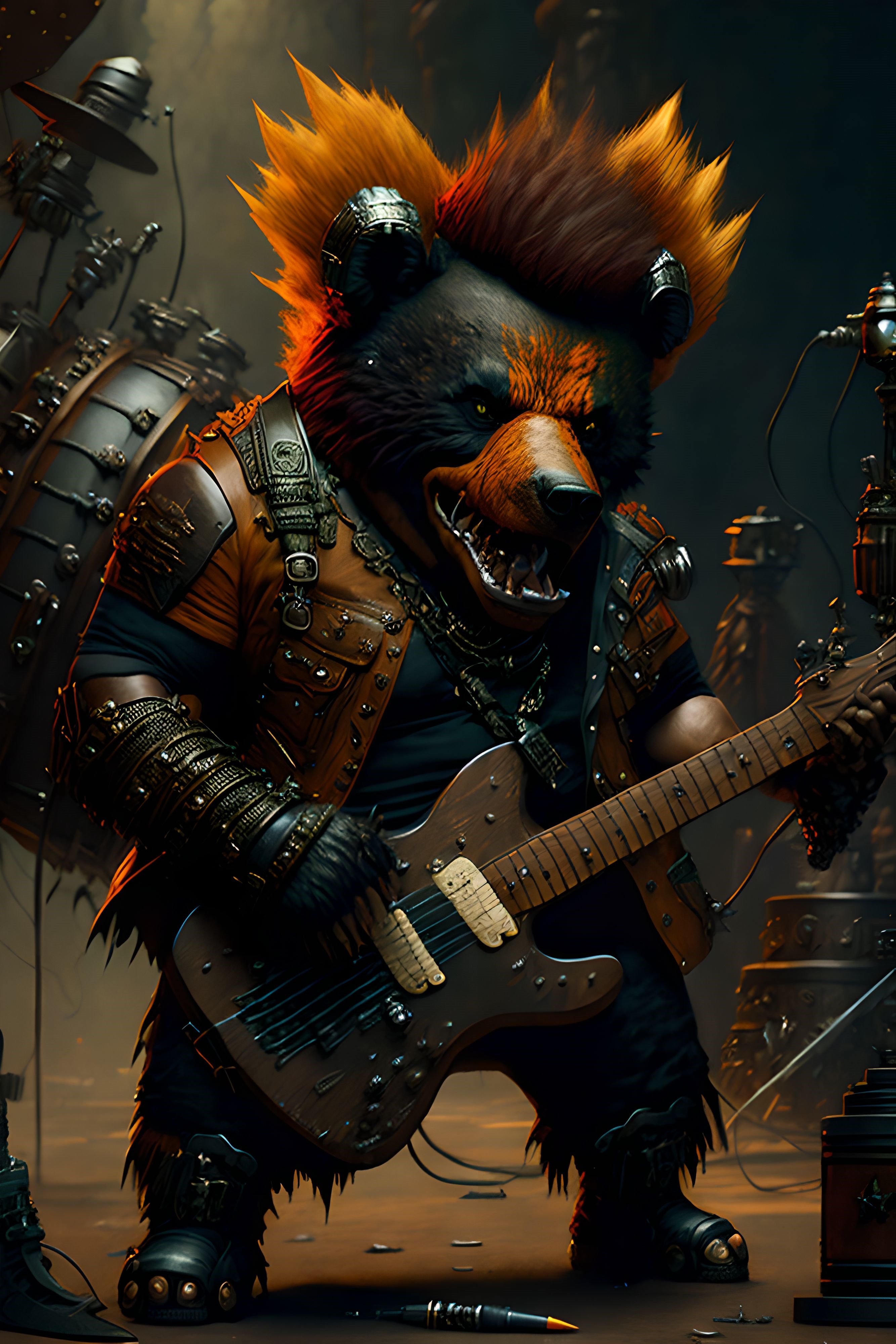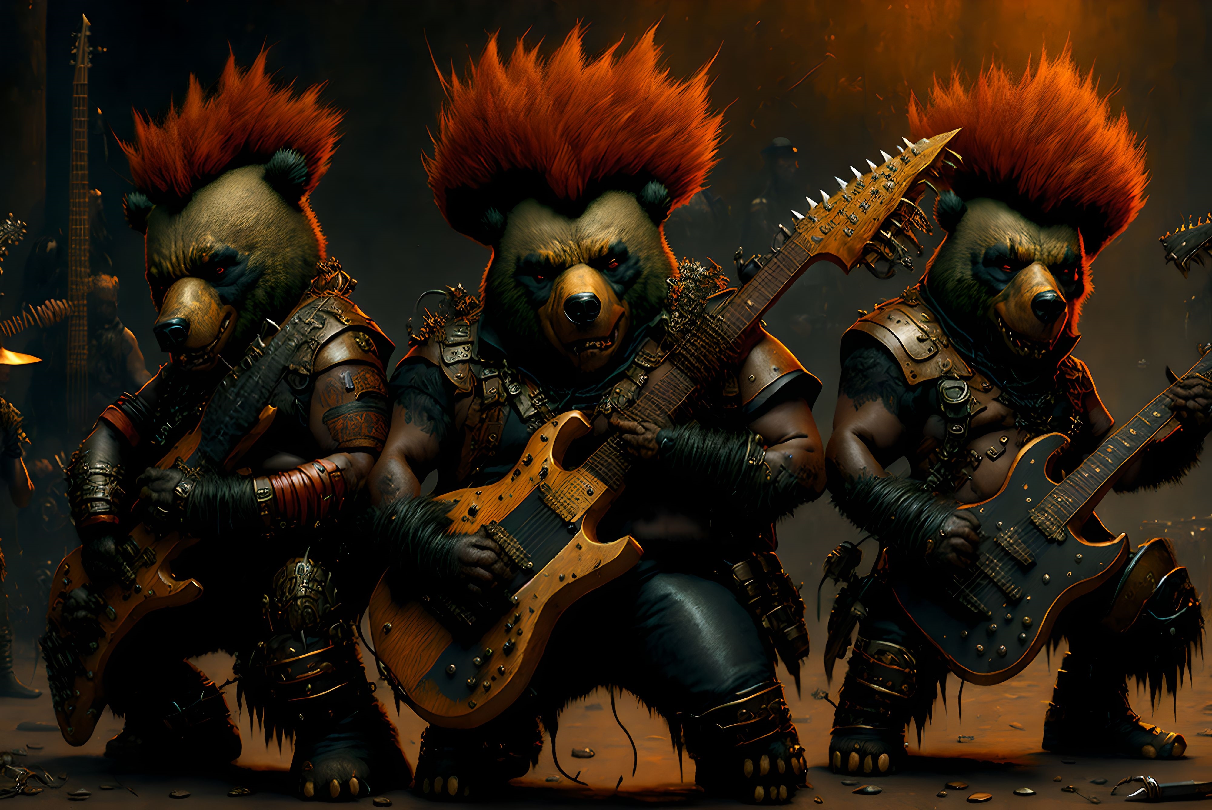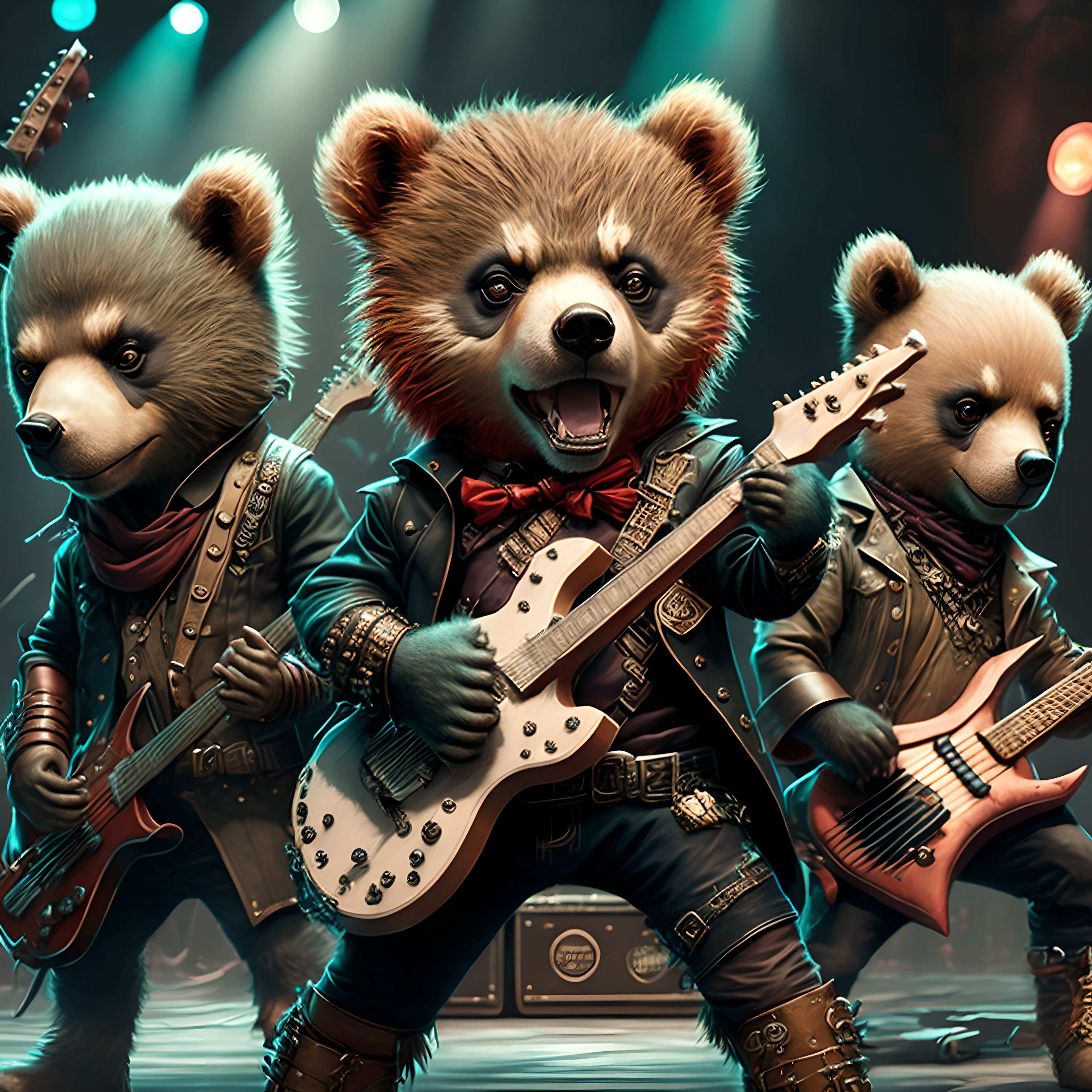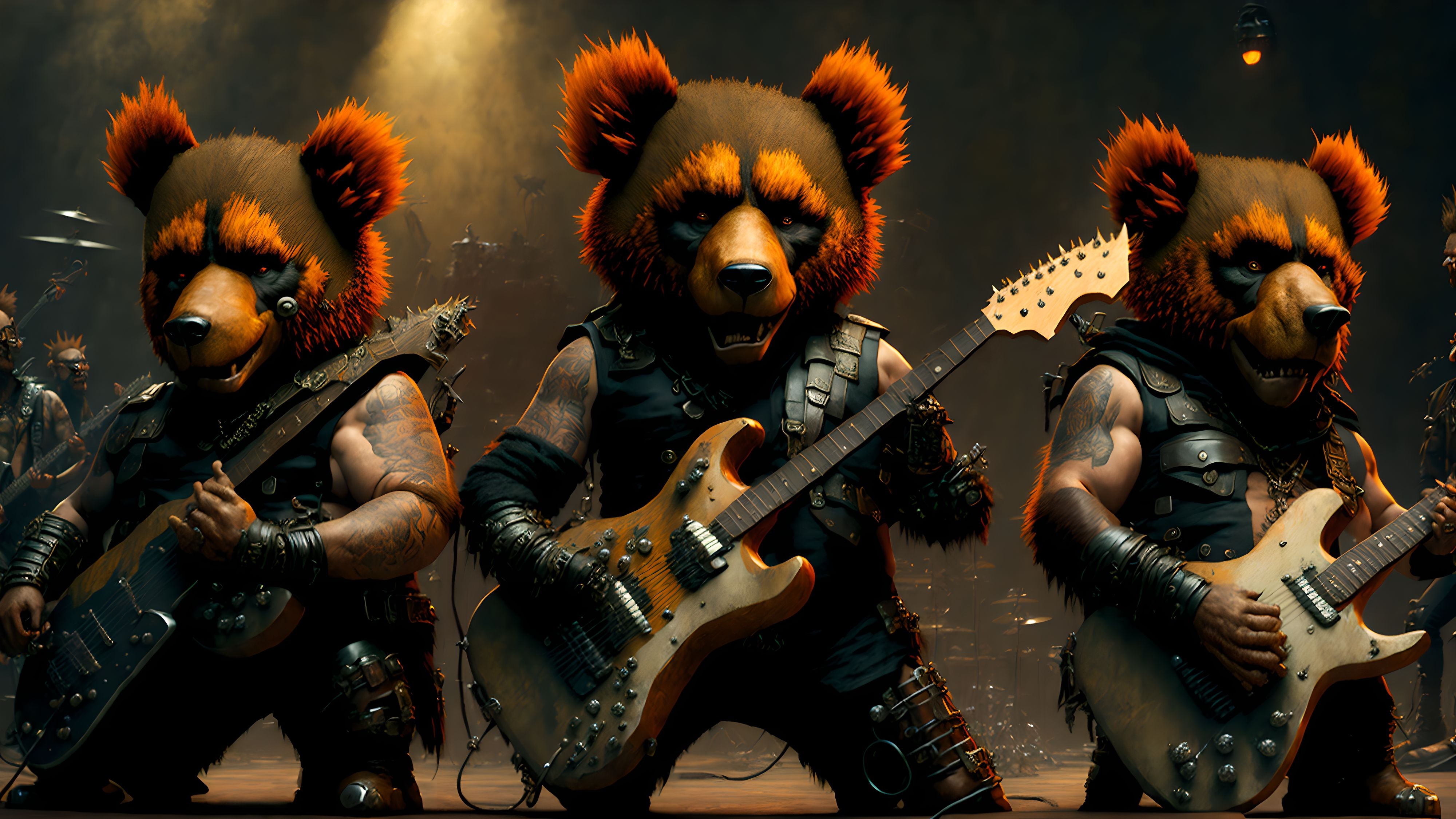 le quincailler | Arf, rien de fou, juste des images d’un groupe de punk rock qui joue, sous n’importe quel angle, avec la liberté de lieu que permet l’ia... Ah, et les musiciens, c’est des ours... --------------- |