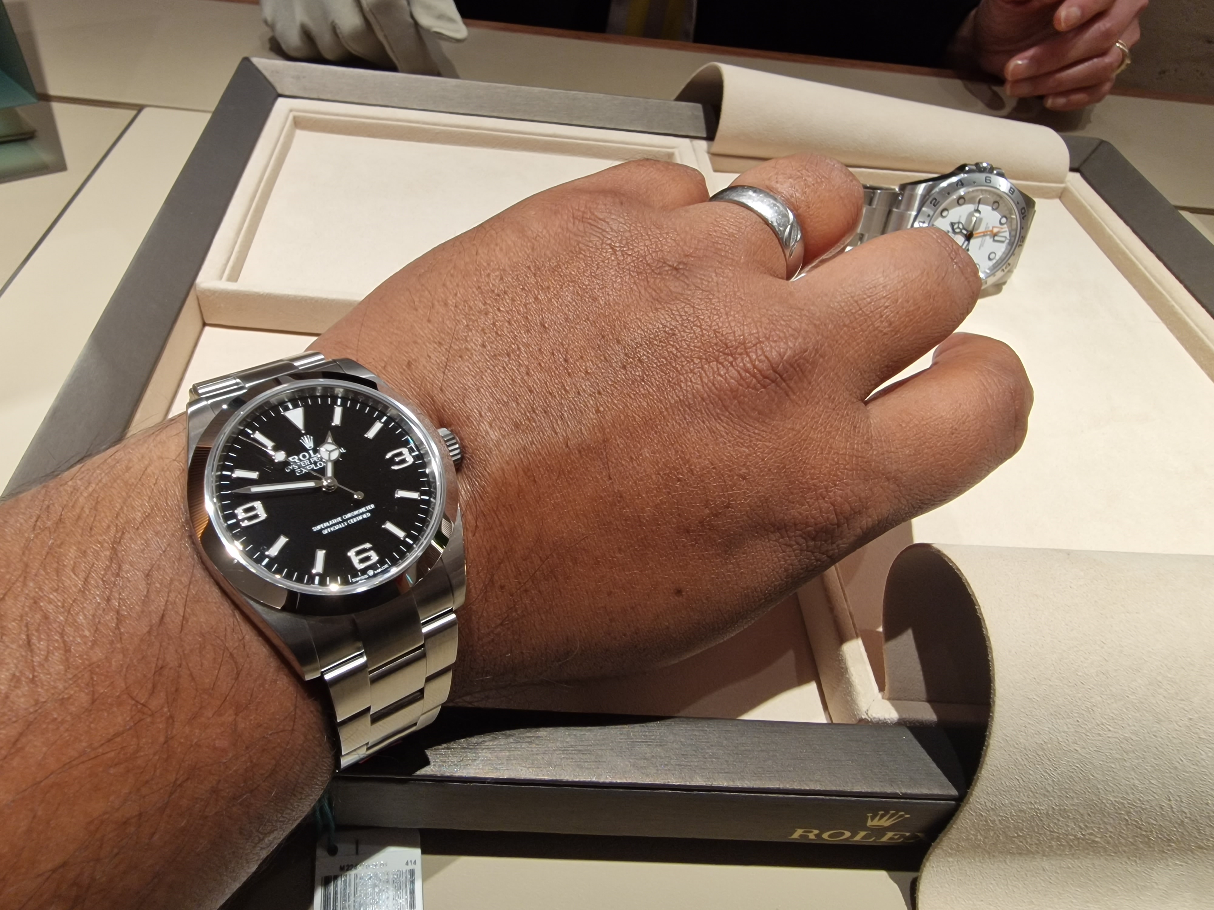Jen ai essayé des modèles, pourtant, rien ne l'a détrôné. La même sensation que quand une fille dont on est amoureux accepte de sortir avec nous. Après s'être pris tant de rateaux, cest inattendu, ca fait du bien. Bref, outre le sentiment bête de béatitude, plus objectivement, ce que j'aime : -Les proportions et le maintien au poignet. Venant dune tudor gmt pepsi, la différence est flagrante. La finesse de ce boitier pourtant etanche 300m, le glidelock qui permet un ajustement au poil, le diamètre parfait pour moi. -la lunette est un pur chef d'œuvre. Cette sensualité quand on la tourne. Le cliquetis..Et le pip lumineux collé plutot qu'enfoncé, les chiffres gravés à la perfection avec la pointe de platine. Du relief, de la délicatesse et du tranchant. Meme le glossy de la ceramique que je craignais me plait. Rien à voir je trouve avec certaines Omega criardes. Et ce polissage fin sur le pourtour de la lunette.. J'avais une légère preference pour la mk1 à la teinte plus sombre. Au final, je préfère celle ci. Plus de peps. Elle me fait sourire, comme la Pepsi. Effet que ne me font pas teintes monochrome ou lunettes coke et autres. -Cet acier , ce brossé..; ce que j'ai vu de mieux. Je préfère cet oyster au jubilee ou aux versions avec maillons poli. Ca s'affine, cest léger, ca se drape magnifiquement autour du poignet sans en faire trop. -Certains détestent, moi j'adore ces aiguilles, mercedes/glaive/lollipop, et les index rond cerclé d'or blanc contrastent parfaitement avec le cadran noir. -l'intégration boite/bracelet avec les "end link" , la partie que j'adore regarder avec les jeux de lumière. 2 défauts, à mon sens. -Le prix et la reconnaissabilité. Difficile de la porter au travail en daily ou en famille étant donné les a priori. Et même avec le voucher de 350€ Pour finir, je me suis mis sur liste de souhait pour l'Explo 2 Polar. Message cité 10 fois Message édité par Silk56 le 05-10-2025 à 12:19:46 |