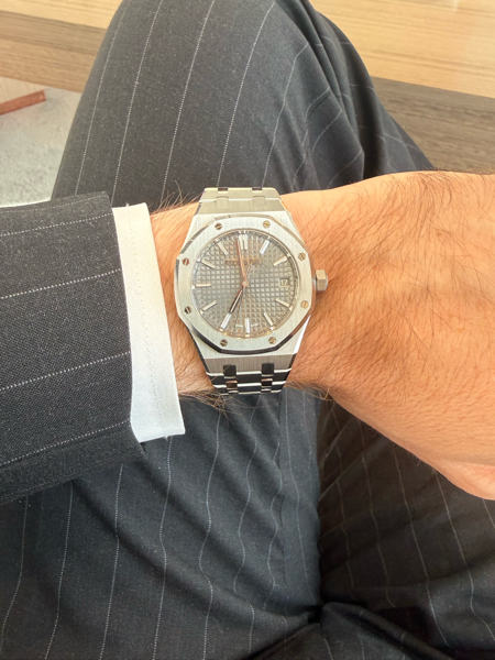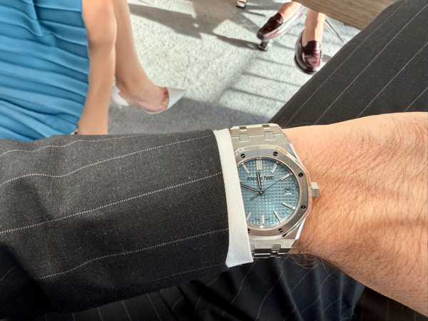 Coup de foudre total sur cette magnifique 15550 cadran bleu ciel aux reflets incroyables :
