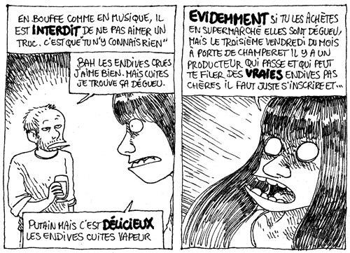 _tchip_ | Je viens justement de manger des endives au jambon ce soir, je dirai que tout est dans la température du four --------------- He likes the taste... |