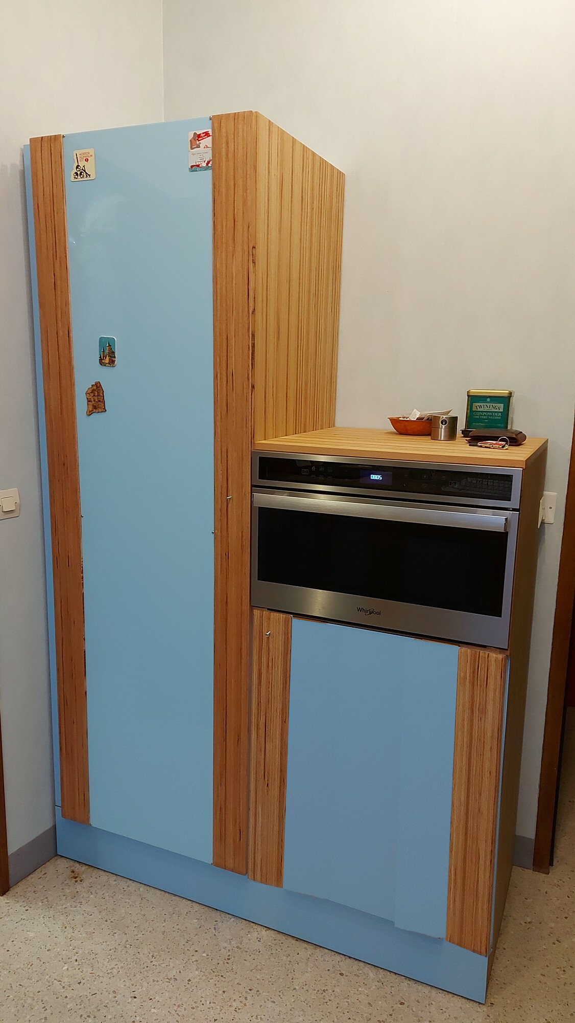 Robbb | Tin Campedel tu tends le bâton avec tes photos de cuisine bleues sur "Construire". "Make" est une joyeuse contrée peuplée de gens respectueux, mais là bas le style décalé de ta cuisine va générer des remarques folkloriques Comme cela a été dit l'essentiel est que ça te plaise. Puis si tu te lasses du bleu tu pourras toujours repeindre au pire. Je considère un remplacement de cuisine a l'occasion de la réfection du revêtement de sol chez nous. J'hésite entre un truc tout fait en massif type "Cocktail Scandinave" :