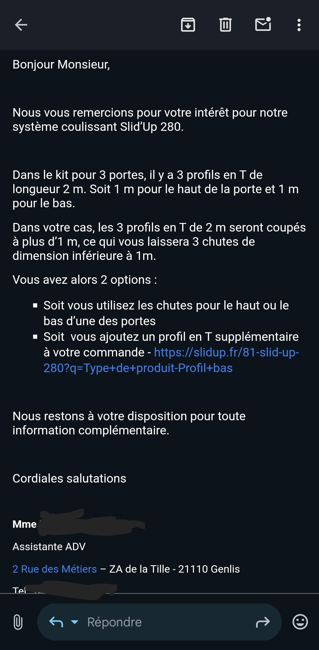 Perso, je veux du 3 portes sur rails triple (pour avoir 66% d’ouverture) : je trouve pas Seule solution trouvé : couper en deux un rail double et le rajouter à un autre rail double (y a intérêt à avoir une coupe propre J’ai 270cm de placard à faire (un peu court je trouve pour 4 portes mais parfait pour 3 portes de 93cm) Message cité 1 fois Message édité par aldayo le 07-03-2025 à 08:59:47 |