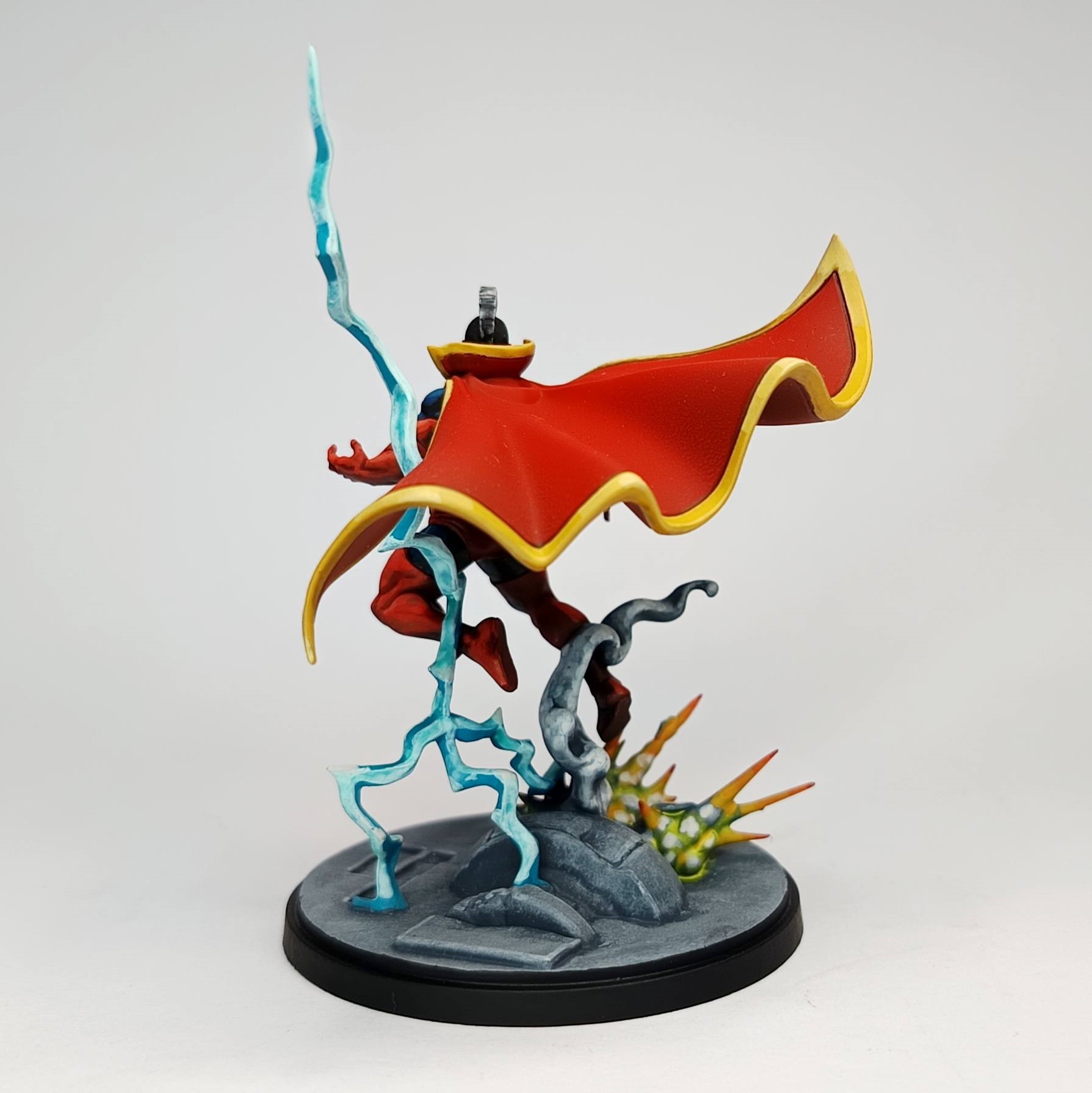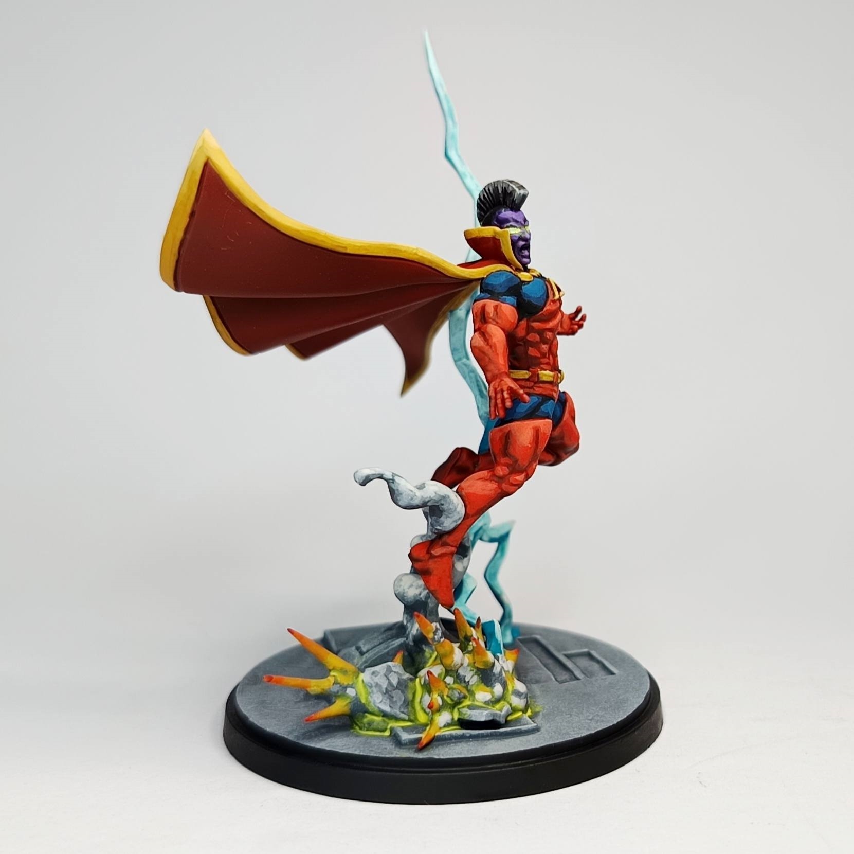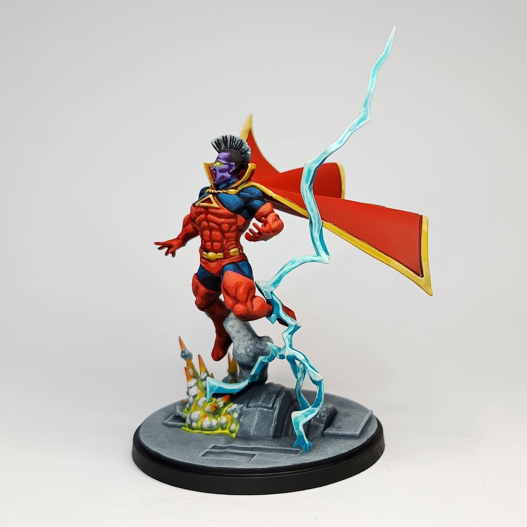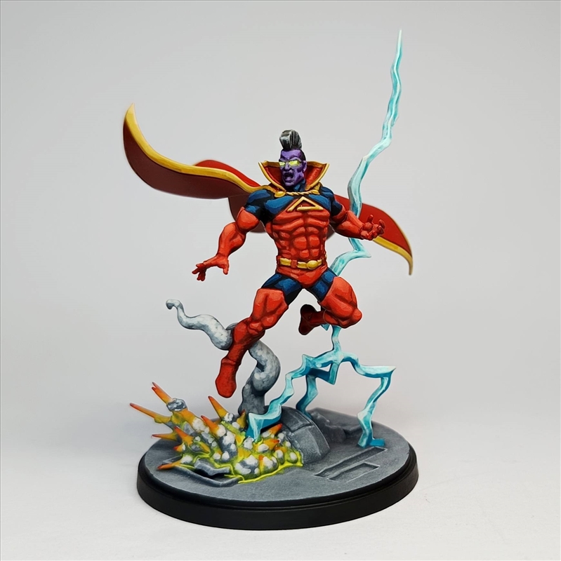 J'ai même pas copié, j'y suis allé au feeling et j'ai joué avec les encres et le vernis, encre rouge pour saturer mes mélanges et faire un glacis de finition histoire que ca pète bien, je pensais faire la même chose sur le bleu mais pas eu besoin. J'ai beaucoup fait de mélanges progressifs sur la palette (en vrai faut écouter les conseils YT, mélanger du Sunny Skin Tone pour les gradient chaud, les Gris Froid pour les couleurs froides et le Ivory avec le jaune ca fait des miracles). J'ai également testé l'éponge (pour faire la base du socle, Administratum Grey sur Machanicus Std), et bien je suis agréablement surpris. Avant je ne jurais que par la trinité base / shade / layer voir drybrush, mais en fait le pur layering avec les bonnes couleurs et juste du glacis pour teinter ou avoir des transitions plus fines c'est trop fun à faire. Et le vernis mat pour homogénéiser un schéma sans TMM, première fois que je fais (Ultra Matte de chez AK à l'aéro) et ca rend encore mieux le côté comics. Bon et surtout le plus important, mon "client" est aux anges avec la fig, elle aurait été à moi j'aurais passé quelques heures en plus pour la cape, le socle et affiner les détails de la tête mais bon il faut se fixer des limites sur une commission Message édité par trollandco le 11-09-2025 à 00:45:43 --------------- [ACH] Jeux XBox One [VDS] Jeux Wii / Origin : TrollAndCo (Vidéos HFR BF1/BFV) |