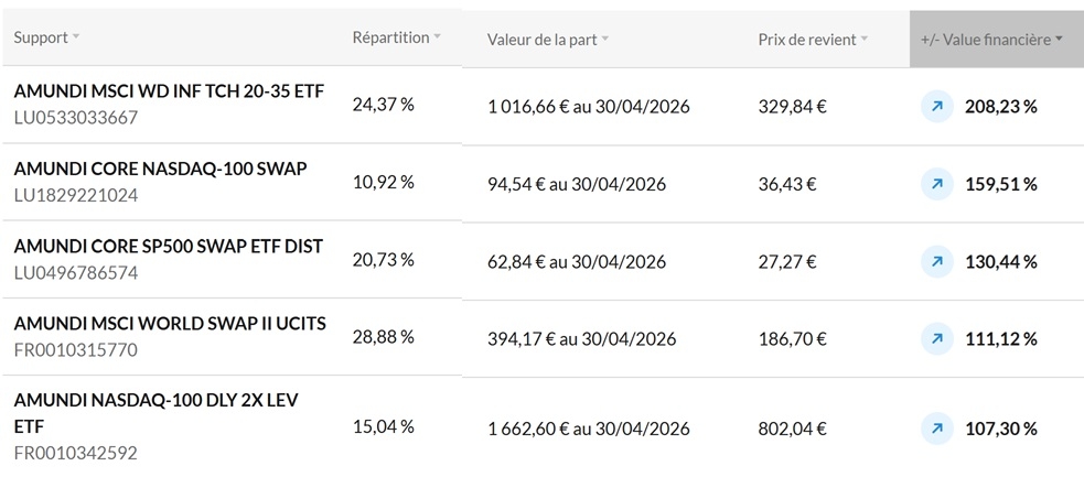 - CTO Saxo à +5,59% sur le mois et +13,48% YtD (chiffres faussés car l'enveloppe était presque vide jusque mi-mars).