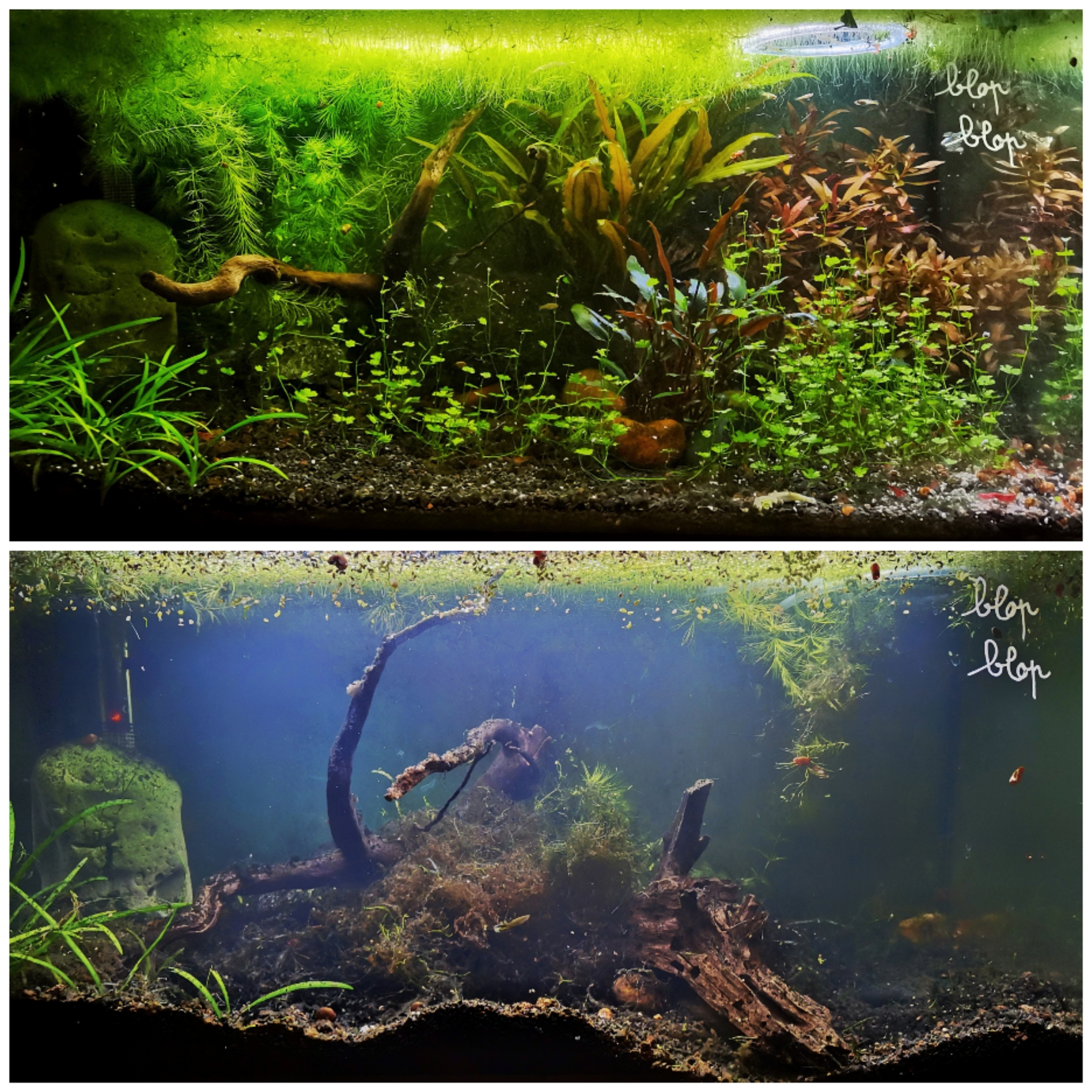 lxl ihsahn lxl ●⌠ Antaigris ⌡● | Tuto : comment transformer un aquarium plein de vie en scène post-apocalyptique en deux semaines. Je suis totalement découragé, sur le cul, j'arrive pas à comprendre comment ça a pu tourner aussi mal aussi vite. Je suis parti 10 jours en vacances, des amis et voisins venaient nourrir les chats. Je leur ai dit de mettre une pincée de nourriture pour les endlers au passage. Le detonnateur est au premier jour : la maman est venue avec son fils de 5 ans et sa fille de 3 ans. Un instant d'innatention, et la fille a versé le pot quasi entier de granulés dans le bac. La mère m'a appelé juste après, pour me demander quoi faire. Je lui explique comment utiliser la cloche à vase pour aspirer un max de nourriture. Elle fait de son mieux, je ne peux que croiser les doigts. ayant des dizaines de crevettes et centaines d'escargots, je m'attends à une orgie et retrouver un bac blindé de nitrates. Sauf que 3 jours plus tard, l'eau est quasi opaque et noire, et toutes les crevettes sont mortes, de même que les endler adultes. Mais tous les jeunes endlers sont épargnés, alors je les fais de les rapatrier dans mon 20 L, qui n'a que des plantes. Ma voisine racle le fond pour ramasser les cadavres au plus vite (regroupés largement dans un coin à l'avant), sans toucher à la flore d'arrière-plan... puis remplace les 2/3 de l'eau par de l'eau de conduite, en y ajoutant un trait crystal clear pour précipiter la matière en suspension. Elle refait un remplacement quelques jour plus tard. Je suis rentré ce soir, et c'est pire que je pensais : tous les végétaux sont mort ou à l'agonie. Je fais un test bandelette, les paramètres sont pas si mauvais : quasi aucun nitrites ni nitrates en vue. Le pH est monté à 8 et degré KH supérieur à 15. Je ne sais pas par quoi commencer là.... --------------- [YouTube] Le Cerveau Lent : vulgarisation sciences cognitives ◦ [url=https://forum.hardware.fr/hfr/AchatsVentes/Photo-Audio-Video/vds-pentax-samyang-sujet_644991_1.htm]Vente Penta |