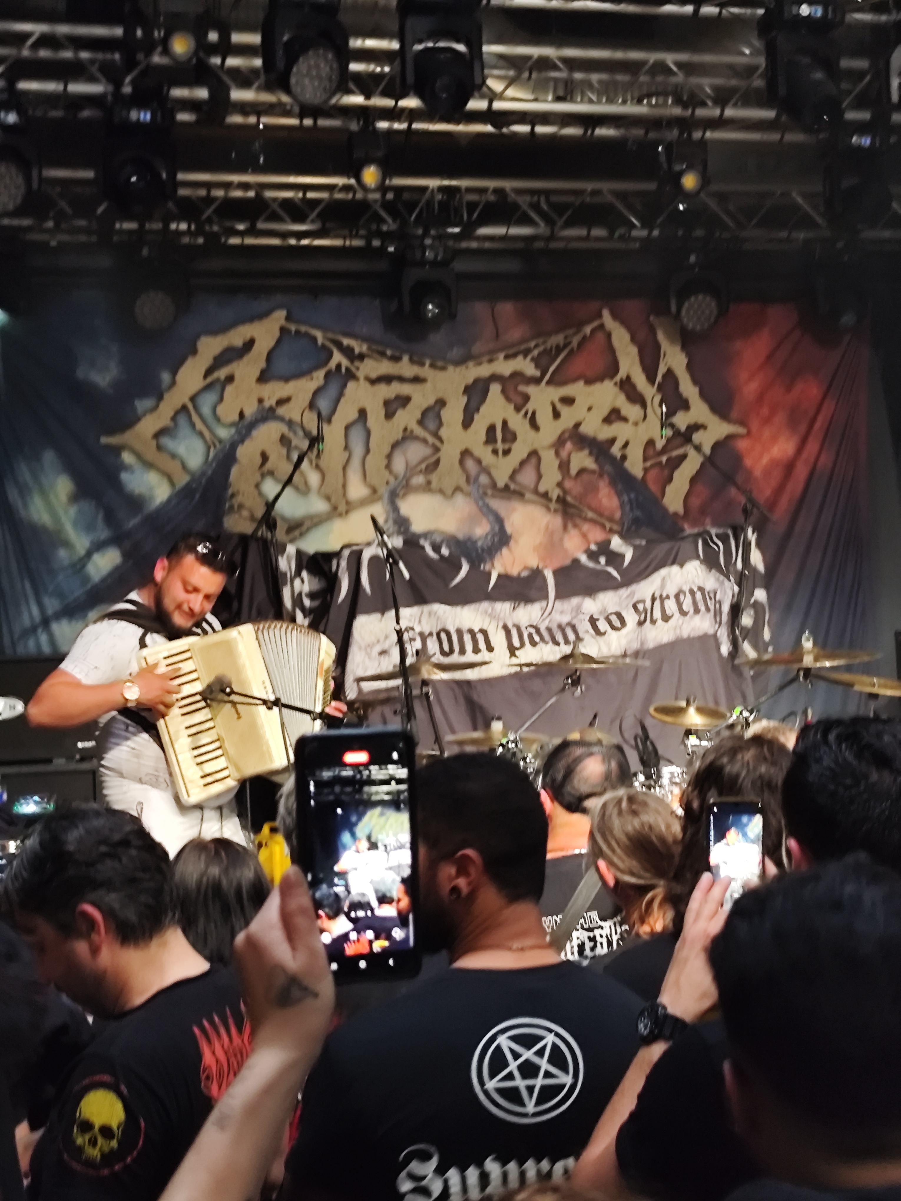 Au Black Lab, y'a un balcon sur le côté et c'est là où se trouvent les loges et on l'y voit les groupes regarder ce qu'il se passe sur scène . Le mec y était dès le début des shows on se demandait qui c'était et ce qu'il foutait la. |