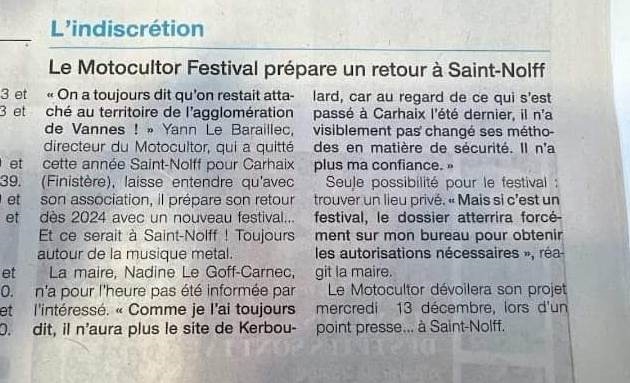 Gonzo49ers | Ce n'est pas le Motocultor qui revient à St Nolff, c'est Le Baraillec qui veut organiser un autre truc.