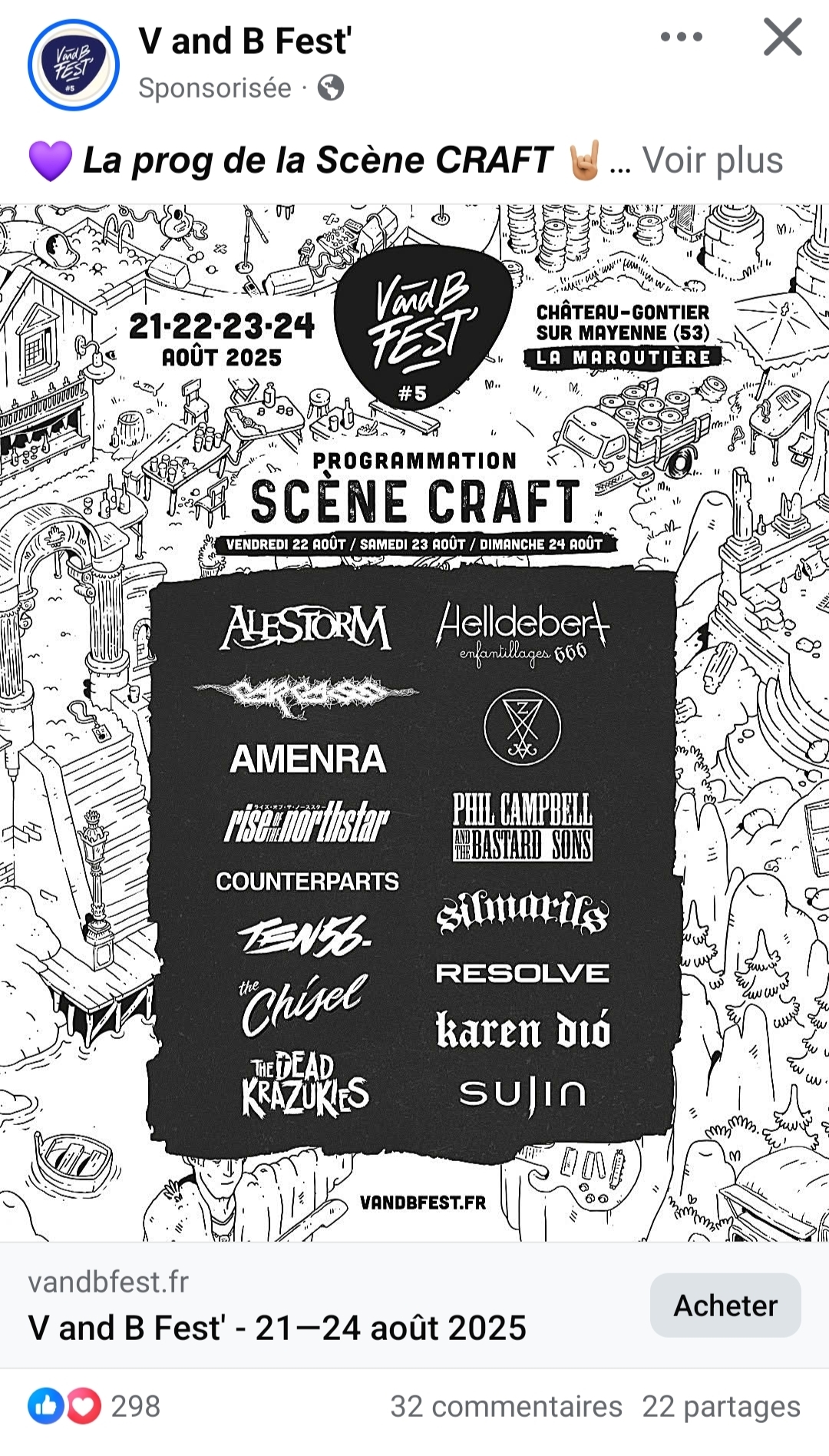 Va voir l'affiche du V and B festival |