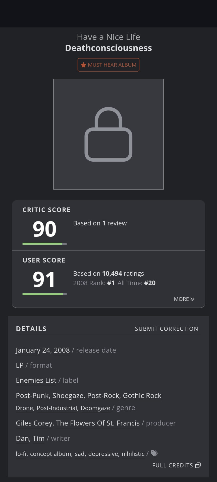 Album n°1 pour 2008 sur RYM avec plus 45000 votes et idem sur albumoftheyear avec plus de 10000 votes |