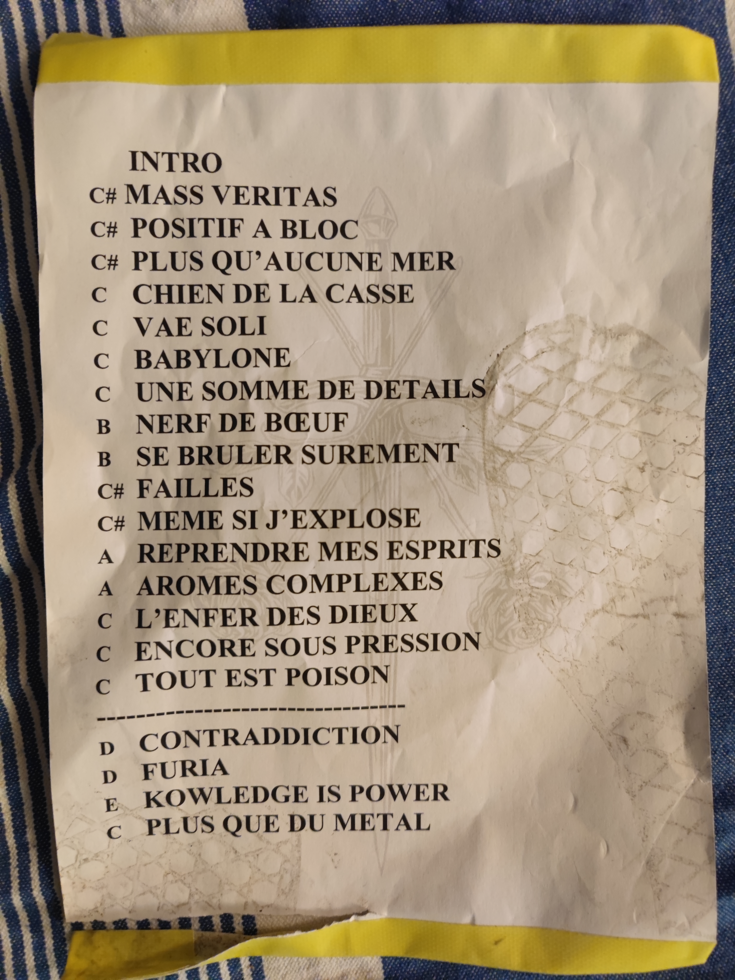 Notez qu'ils ont fait 2 chansons du prochain album : Mass Veritas et Encore sous pression. Message cité 1 fois Message édité par The Douche King le 26-03-2023 à 00:08:52 |