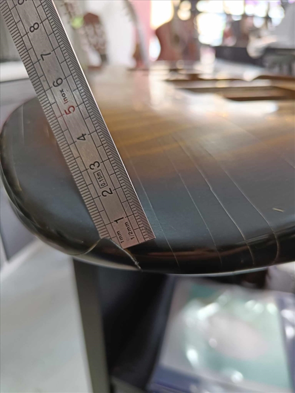 J'ai bouché un trou de vis sur ma Tele avec de la peinture acrylique. Matte. Sur un vernis gloss. La couleur est très proche, mais c'est pas plat, ça se voit que c'est du rafistolage, et je vais mettre un sticker par dessus. Mais j'aime bien comême. Après, moi c'est un petit éclat, toi ça depend des dégâts...