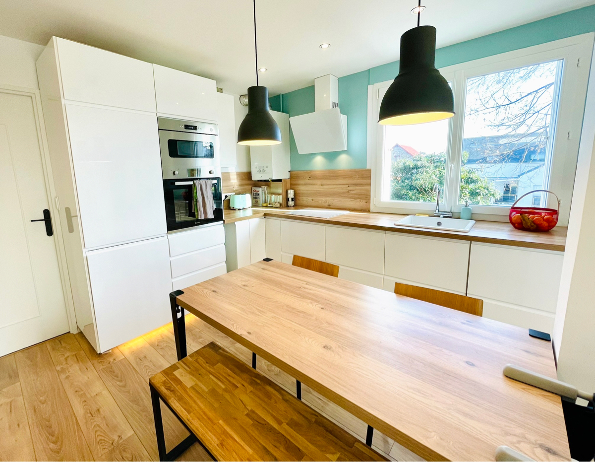 yoke :) | Pour le coup le cuisine était très grande pour un appartement de 59m2. Autre avantage, ça a apporté beaucoup de lumière dans la pièce de vie qui était très sombre. |