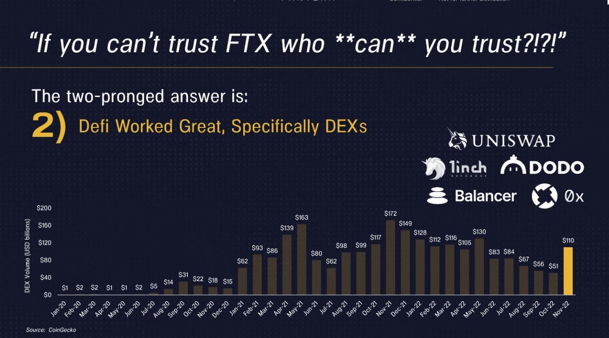 De ce fait, le BNB est il le miroir de la confiance des acteurs du marché envers Binance en plein FUD ? Au contraire se disent ils "il n'y a rien a craindre pour Binance regarde le BNB toujours +/- solide" ? Ou d’après vous ce n'est pas représentatif ? Le retrait des actifs quelqu’en soit sa forme pourrait augurer le sentiment inverse D’où ma 2eme question ; doit on se réconforter dans ces moments de FUD que le cours BNB bouge peu a la baisse ? j'en tente une 3eme, le BNB peut il être fortement valorisé sans l'activité CEX de Binance ? Donc s'extraire définitivement du joug de Binance. Si jamais je peux m'aligner sur les trolls
