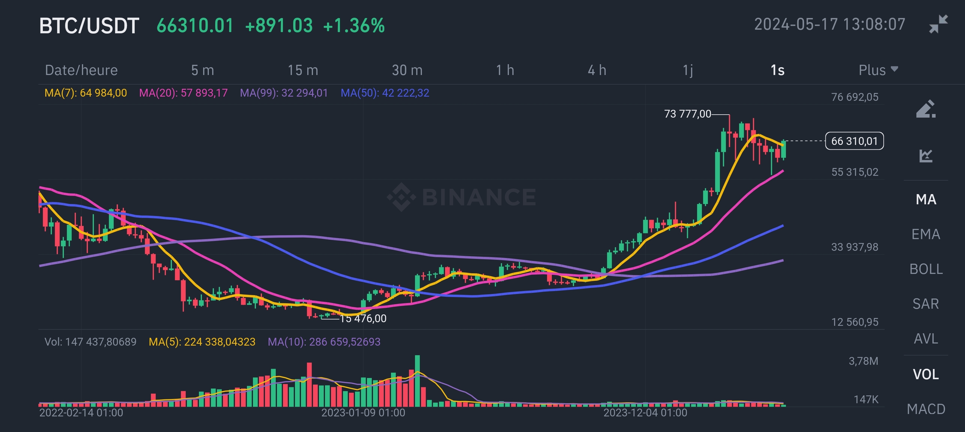 Ryu- | si vous voulez un bon point d'entrée : croisement à la hausse MM20 weekly et MM50 weekly (je l'ai appris de Rodolphe Steffan) Très souvent on a droit à un gros pump après et ça valide une forte tendance haussière après il faut aussi surveiller la MM7 weekly et le croisement MM7 MM20 à la hausse edit : je complète, c'est pour ça qu'une fois le balais des moyennes mobiles effectué, on va chercher à rentrer sur les replis sur MM7, MM20, MM50 parce que ça devient des supports majeurs Message cité 1 fois Message édité par Ryu- le 17-05-2024 à 12:53:25 --------------- [ |