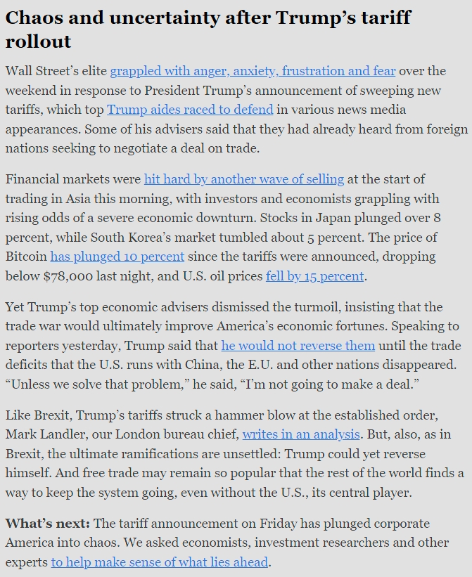 cyd125 Lord Cordovan | Et dire que j’ai failli investir plus de 50k dans le S&P500 et me disant qu’il allait exploser lors de l’investiture de Trump Vive le Livret A et les placements à 0,01% de rendement finalement Message cité 1 fois Message édité par cyd125 le 07-04-2025 à 10:29:05 --------------- « Je sais pas à quoi tu joues, tout le monde te connait, tu m'enfumeras pas comme ça ». Enerstor |