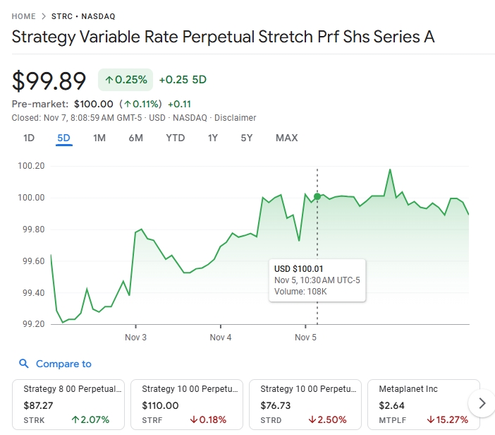 et son produit STRC qui donne 10% est à son plus haut niveau historique... Message cité 2 fois Message édité par vanloque le 07-11-2025 à 14:40:01 --------------- -"The party told you to reject the evidence of your eyes and ears. It was their final, most essential command." – George Orwell, in 1984 |