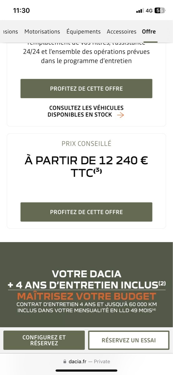 (3) Prix conseillé pour Dacia Sandero Essential SCe 65 neuve hors options selon le tarif n°2224-03 du 01/10/2024. Déjà le Je suis allé voir, il faut au moins le moteur 90 ou 100 (sais plus), ma tante a la version 65cv. Après, elle fait souvent de longs trajets, donc GPS + Stepway (elle veut changer car elle trouve ça Mégane trop basse pour entrer dedans) = environ 20k€ Message cité 3 fois Message édité par salsifi34 le 30-10-2024 à 11:51:30 --------------- Le tuning c'est tabou, on en viendra tous à bout !!! |