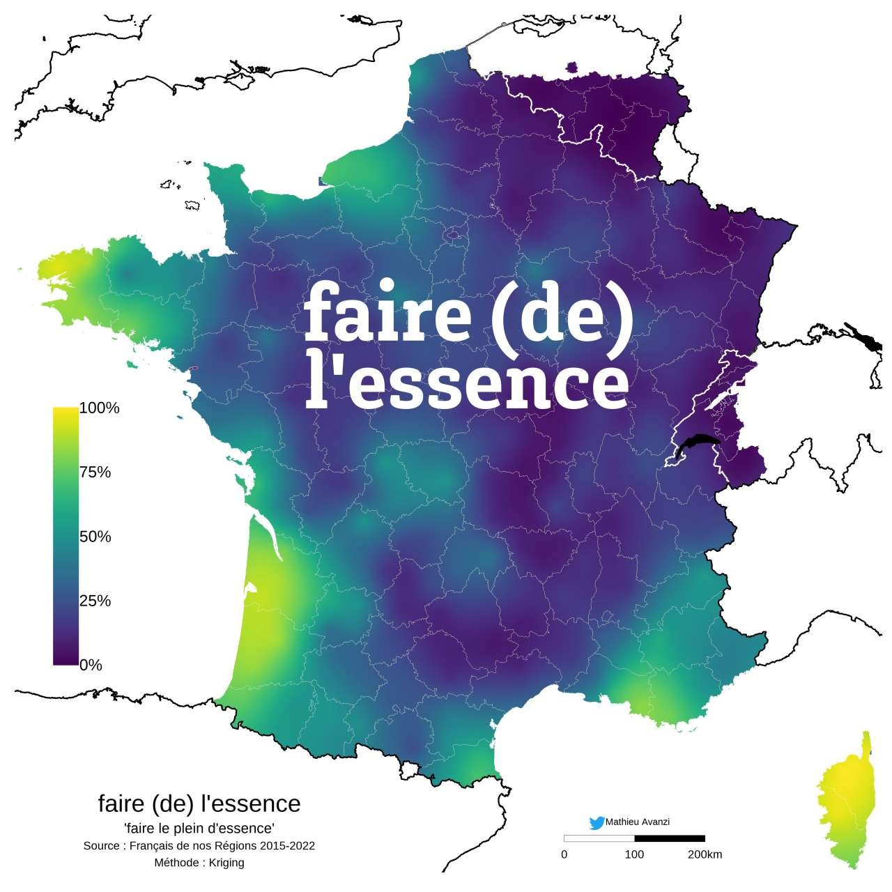 Aujourd'hui sur Twitter une carte de France de l'usage "faire de l'essence"