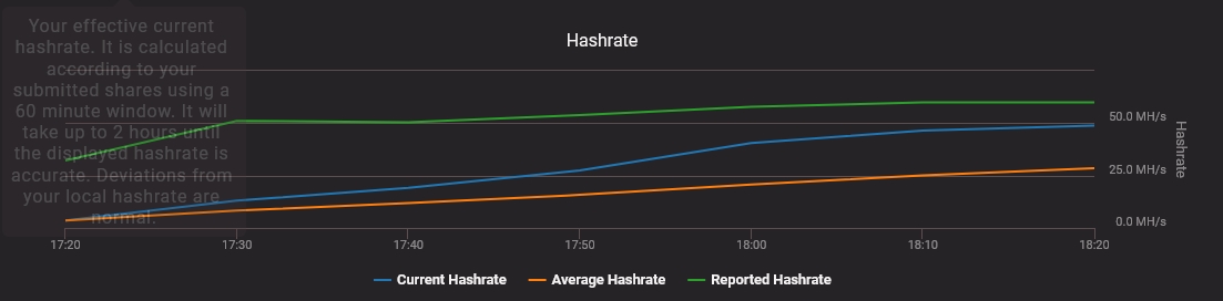raph0ux Amateur de PC | Bon en fait c'était super simple du coup je me sens con d'avoir utilisé Nicehash depuis si longtemps et surtout depuis la dernière mise à jour où on ne peut plus cacher la fenêtre Edit : en revanche j'ai un fossé entre "reported hashrate" (dans les 50MH/s) et "current hashrate" (il a commencé très bas et il monte lentement, là il est à 19MH/s), il y a un truc qui doit se passer pour que ça soit stable ? Message cité 1 fois Message édité par raph0ux le 08-04-2022 à 17:43:53 --------------- [VDS] ↑ Boîtier Dark Base 700 blanc ↑ DDR2 ↑ Clavier Corsair K65 ↑ /// LEGO UCS / Poussette Trio Peg Perego |