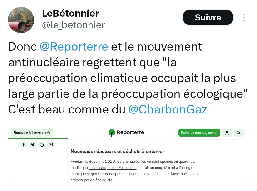 Non, mais la France est globalement loin d'être un mauvais élève et certains voisins auraient plutôt intérêt à nous demander des partenariats et accepter un peu plus notre vision des choses de s'enfermer dans un dogmatisme presque religieux sur des moulins à vent. On a quand même des plans éoliens monstrueux, on a juste attaqué tard à cause de politique qui jouent à l'autruche avec le système énergétique... Et de procédure d'ecologistes qui ont pourri les délais d'installation... Edit : yen a qui ont la tête sur les épaules https://www.marianne.net/economie/e [...] e-lenergie Message cité 1 fois Message édité par 20Boy le 10-08-2023 à 14:40:24 |